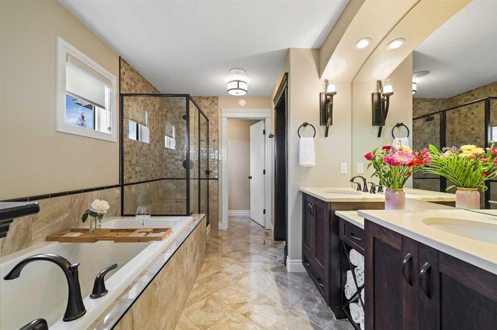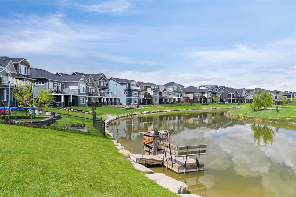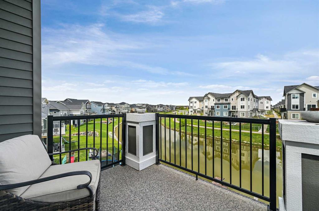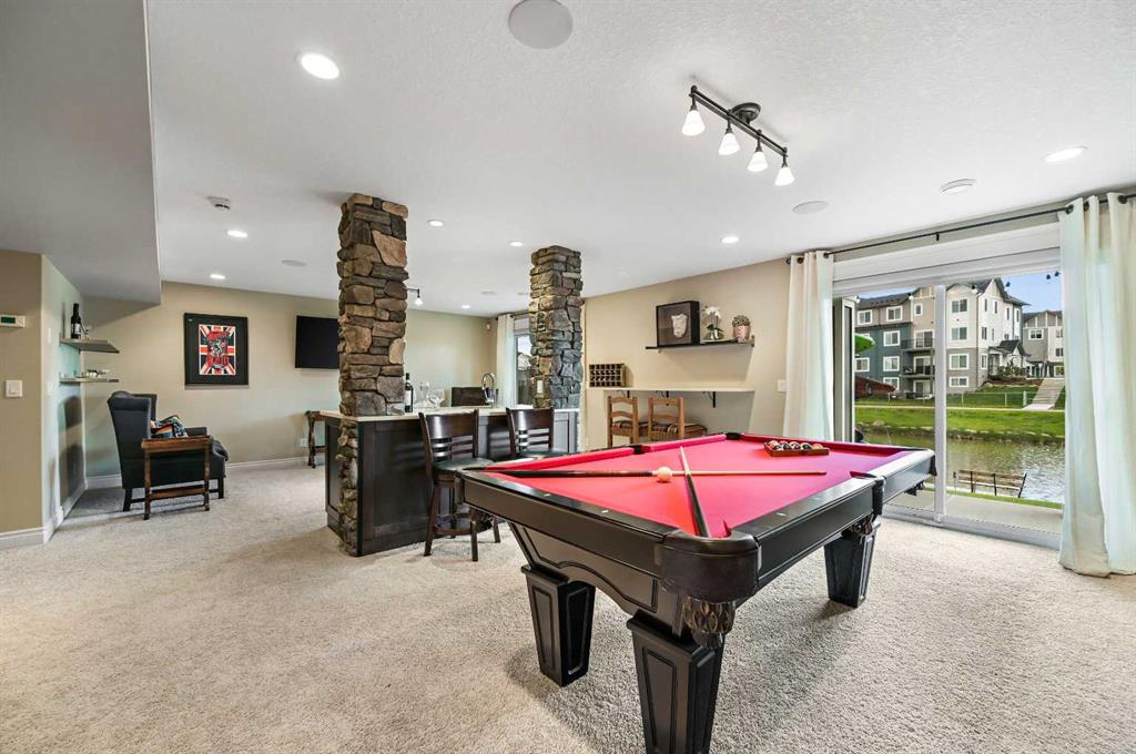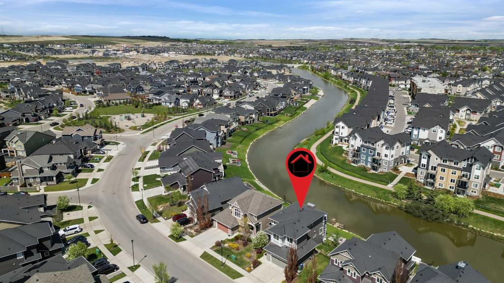 Welcome to this WATERFRONT luxury home on an oversized 7290 sq ft lot in Bayside Estates that offers a lifestyle like no other in Airdrie. With incredible craftsmanship & arguably Airdrie's best location backing onto the Bayside Estates canal with it's own private dock to offer fishing, kayaking, skating & it's a former McKee showhome! The main floor is thoughtfully designed with an open concept layout & hardwood throughout that perfectly complements the large bright windows which fill the room with tons of natural sunlight. The living room hosts a floor to ceiling stone gas fireplace feature, modern built in shelving/cabinetry and this flows seamlessly into the dining room (with a view of the canal) & an upgraded kitchen that rocks white cabinetry, stainless steel appliances (wifi enabled fridge is new!) & beautiful quartz countertops. The main floor also has a large office, a garage entryway with built-in seating/storage, a half bathroom & a large balcony with two sets of sliding doors to step out & enjoy the view because this one is 10/10 if you are searching for waterfront living in Airdrie! The upstairs greets you with a large bonus room with a built-in desk on the side & adjacent you'll be pleased with the spacious primary bedroom retreat overlooking the canal including a private primary bedroom balcony that provides epic sunsets & views of the canal! The spa-like ensuite bathroom with a deep soaker tub, dual sink vanity & a tiled shower includes the walk-in closet with custom built-in closet shelving. The spacious 2nd and 3rd upstairs bedrooms are conveniently located next to the 2nd full bathroom which is adjacent to the upstairs laundry room. The walkout basement with two more sets of sliding doors hosts a large family room with a pool table area & a custom bar with a wine fridge perfect for movie nights, as an exercise space & entertaining. Adjacent you'll find the 4th bedroom that has a unique space finished underneath the stairs that is perfect as a children's playroom & another full bathroom. The mechanical in this home is excellent with a full built in media system including built in speakers throughout the home, Sonos & a boiler system to offer in-floor heat throughout the basement. Since it was a former show home the garage is completely finished with in-floor heat, light fixtures, ceiling texture, built in speakers & a back bay perfect for parking motorcycles, bikes or as a workshop space. Once the sun sets you'll be pleased to enjoy another upgraded feature of this property by turning on the Gemstone Brand architectural outdoor lighting. Location is the most important rule in real estate & this property knocks it out of the park with an extra wide lot backing the water that you will rarely find in Bayside - As a bonus there are also underground sprinklers! This home is the definition of a home that shows 10/10 and it must be viewed to fully appreciate its incredible craftsmanship & the waterfront lifestyle offered.