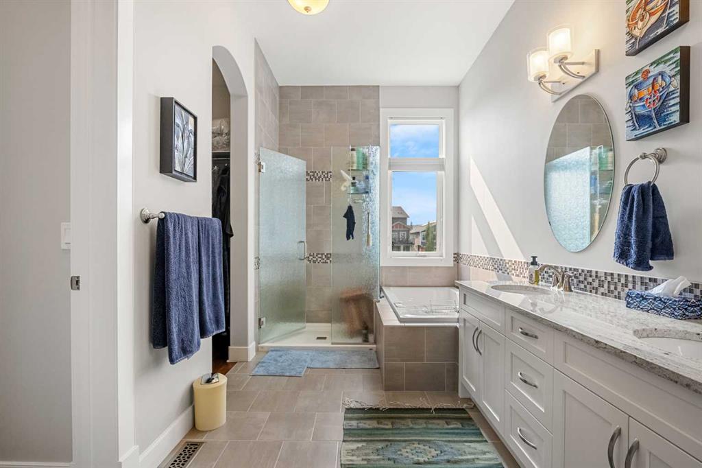Welcome to 2253 Bayside Road, where sophistication, comfort, and exceptional style meet WATERFRONT. This is a RARE opportunity to own a fully finished walkout bungalow on one of the most highly sought-after streets in Bayside Estates. Situated on a prime lot, this home features a SOUTHWEST-FACING backyard with unobstructed canal views and NO PATHWAY BEHIND YOU, ensuring ULTIMATE privacy and year-round afternoon sun. It’s perfect for sunny afternoons watching the ducks swim by, gathering around a fire with family in the evening or enjoying a peaceful morning coffee with a view. Inside, you’re greeted by 10-foot ceilings, engineered hardwood floors and thoughtfully designed storage. The home office offers a large window overlooking the front porch while remaining private thanks to MATURE LANDSCAPING. The kitchen is a showstopper, featuring a central island with GRANITE COUNTERTOPS, an under mount sink, a large pantry, ceiling-height cabinetry (no dusting required!) and high-end stainless steel appliances including a gas range, built-in oven and microwave. A formal dining area flows seamlessly into the living room where a gas fireplace provides a cozy focal point. With a generous island for barstools, a formal dining area and expansive living space, this home is designed for effortless entertaining. From the living room, step through upgraded French doors with European-style locks onto your expanded, custom extended back deck offering even more space for entertaining, relaxing or enjoying the canal views. This outdoor oasis includes a staircase to the yard, a remote-controlled awning and SUN COAST REMOTE CONTROLLED RETRACTABLE SCREENS covering both UPPER and LOWER decks, perfect for wind protection during the day or private evenings by the canal at night. This luxury feature is rare and highly desirable, especially for a waterfront home. The primary bedroom includes a walk-in closet and a spa-like five-piece ensuite with dual sinks, a soaker tub and a separate shower. A spacious second bedroom, a full four-piece bathroom, and main-floor laundry complete this level. The garage impresses with EPOXY FLOORS & SLAT WALLS for organized storage. Downstairs, enjoy 9-foot ceilings, large windows and upgraded French doors opening directly to your backyard. A highlight of the basement is the wet bar overlooking the expansive rec space, ideal for game nights, barbecues and gatherings. The lower level also includes a large bedroom and another four-piece bath with premium finishes. Upgrades throughout this home include a NEW FURNACE, NEW ON-DEMAND HOT WATER, NEW WATER SOFTENER, IRRIGATION SYSTEM, WINDOWS, DOORS, GEMSTONE LIGHTING, CENTRAL VACUUM, and AIR CONDITIONING. Meticulously maintained by the original owner, this turnkey property is truly move-in ready. With top schools like Nose Creek, R.J. Hawkey, and W.H. Croxford, scenic walking paths, parks such as Chinook Winds, nearby shopping, dining and easy access to Calgary. Call for a private viewing today!