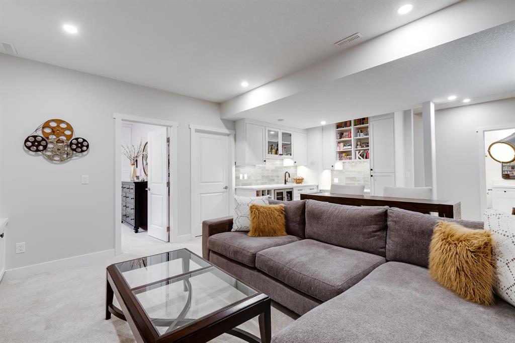 This Stunning Executive Style Home has over $50,000 of Recent Updates that elevate the Decor and Functionality making it Unique and Gorgeous. This Home exudes PRIDE OF OWNERSHIP as it is so well cared for. When you arrive, you are welcomed into the spacious foyer with a large seating bench and the Hardwood Flooring that leads to the Spectacular Living Room that features a Custom Built Wall Unit that surrounds a beautiful Fireplace with Stone Wall. The Wall Unit has amazing Shelves for you to showcase your items and books plus extra cabinetry for storage. The Dream Kitchen has Ivory Coloured Cabinetry with Undermount Lighting, Lots of Pot and Pan Drawers, Upgraded Appliances, Upgraded Lighting, Granite Countertops and an Upgraded Island. The Pantry walks through to the Mudroom that has additional storage and lots of hooks for backpacks and coats. The Dining area can host a larger table and opens to the Large Deck. The Staircase with upgraded metal railing leads to the Bonus Room and Upper Laundry Room. The Primary Bedroom can host a King Suite and has a Ensuite with Dual Vanities, Soaker Tub and Shower Stall. There is New Carpets on the Upper Level. The Lower Level has been Renovated with a Fantastic Wall Unit in the Recreation Room with tons of Cabinetry for Storage, a Beautiful Electric Fireplace, and an incredible Wet Bar with Wine Fridge, Undermount Lighting, Desk area, and more storage. The 4th Bedroom has a Custom Built in Closet and Modern 3 pc Bathroom with Shower Stall complete the Lower Level. This Home also has a Water Softener, Freezer, and Upgraded Window Coverings. The rear of the home has a Large Yard for the kids to play and an oversized deck perfect for you to enjoy all summer long. Located close to Nose Creek Elementary School, pathways and easy access to transportation and amenities. This Stunning Home is ready for your family to make it yours. Ensure to watch the video tour on Realtor.ca or MLS Listing