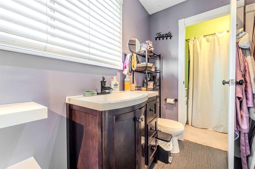 Welcome to this charming home tucked away on a quiet cul-de-sac, perfectly positioned on a spacious pie shaped lot. Inside, soaring vaulted ceilings fill the living area with natural light and create an open, airy atmosphere. The main floor features a welcoming kitchen, a convenient bedroom, and a half bath. Upstairs, you’ll find a cozy secondary bedroom, a full bathroom, and a spacious master retreat designed for comfort and relaxation. The lower level offers a separate side entrance leading to an (illegal) suite with one bedroom, a den, a full bathroom, a kitchenette, and a versatile rec/living room ideal for extended family, guests, or creative use. With no houses directly behind you. Your backyard offers rare privacy, opening through a gate to a peaceful walking path and green space. Enjoy the views from your large deck, perfect for relaxing or entertaining while taking in the tranquility of your surroundings. This location is truly unmatched walking distance to the new library, Nose Creek Park, Main Street transit, shopping complexes, countless churches, farmers markets, preschools, elementary and middle schools, plus endless walking and biking trails. And because the cul-de-sac opens right onto Allen Street, you’ll have a front-row seat to community parades and major local events no need to drive anywhere. This home beautifully combines privacy, lifestyle, and a prime location.