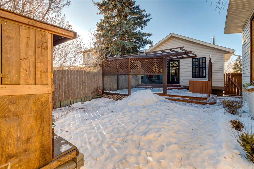 Fully developed bi-level perfectly situated in one of Airdrie’s most established communities, backing onto a green belt leading to a large park. This Bi-Level offers 1,850 SF of developed living space with 3 bedrooms, 1.5 bathrooms and is awaiting your personal touch. Greeted into a large foyer, the bright main floor features hardwood and tile flooring throughout, a well equipped kitchen with concrete countertops spacious, solid wood oak shelving, mosaic tile backsplash while opening to the spacious living and dining area. The over-sized primary bedroom showcases a walk in closet and gorgeous wood frame patio doors leading to your private yard with expansive deck and shed. A 5 piece bathroom completes this level. The basement is finished with a family room, two additional bedrooms, 2 piece bathroom, den, laundry room and an abundance of storage. Don't overlook the off street parking in the front driveway with space to accommodate 2 vehicles. Nicely located in central Airdrie with easy access to shopping and an array of amenities as well as walking distance to numerous parks/playgrounds and Muriel Clayton Middle School. Don't miss out on this incredible opportunity!