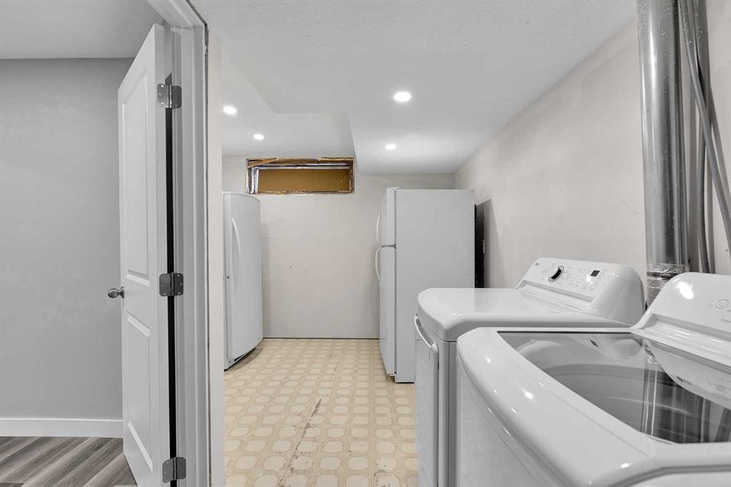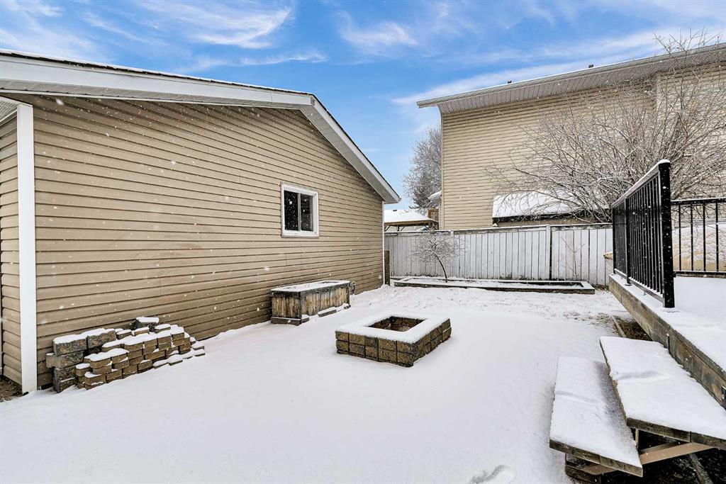 Stand up fridge and stand up freezer in basement, fire pit and planters in backyard |