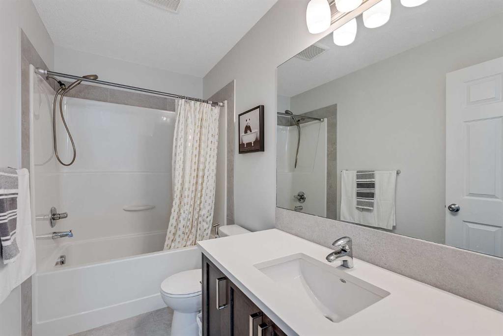 Upstairs, three bedrooms offer plenty of room for everyone. The king-sized primary suite delivers the extras you didn’t know you needed—an ensuite with quartz vanity, oversized shower, and a walk-in closet with its own window so you can finally see what you’re picking out in the morning. The second full bath has a deep soaker tub, and yes, laundry is upstairs where it belongs.