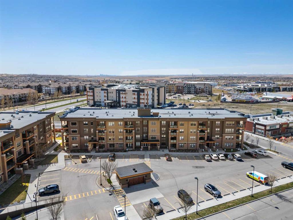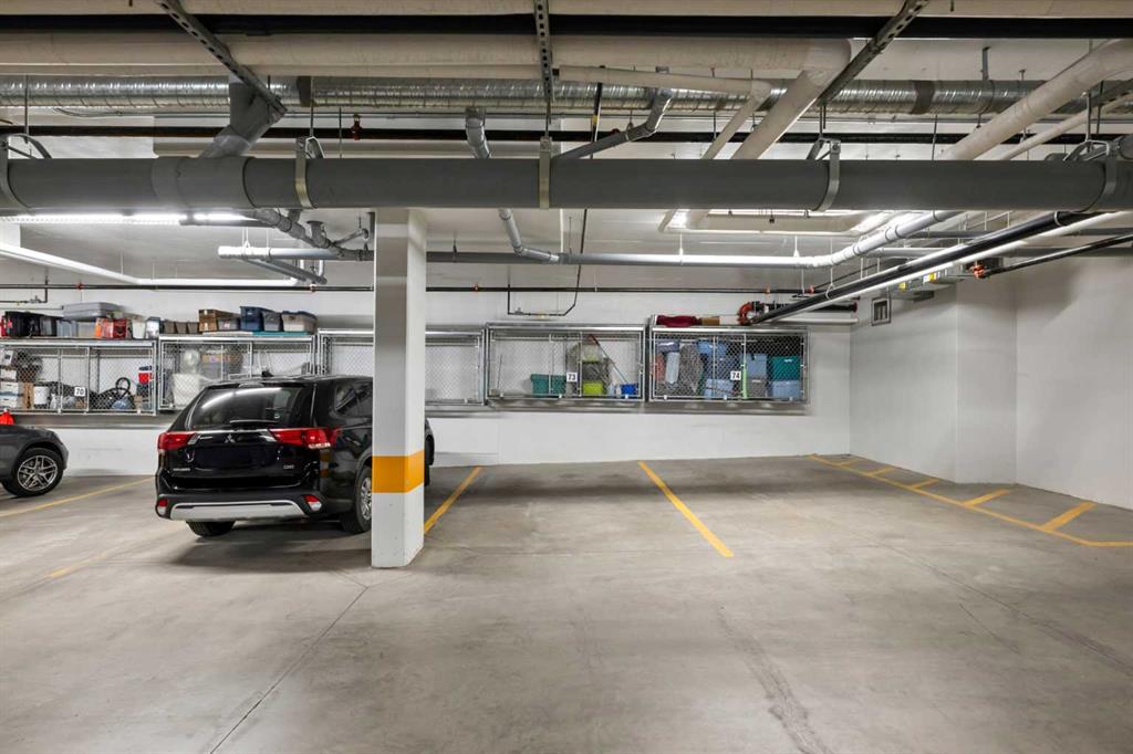 Welcome to The Chateaux! Airdrie's premier 55+ condo building in the wonderful community of Kings Heights known for its sophistication, exceptional pride of ownership and unbeatable access to nearby amenities. Upon entering this unit, you'll be impressed by the abundance of natural light, enhanced by its south-facing exposure. You're greeted by beautiful tile flooring that leads into a welcoming front entrance, where you'll find a spacious coat closet with built-in shelves, perfect for storing coats, keys and shoes. To your right is the kitchen, you will love not only the generous counter space but also the ample cabinetry this layout offers. The kitchen features granite countertops, a large sink, a lazy Susan in the corner cabinet, a garburator and a counter overhang for bar stool seating, ideal for casual meals. Stainless steel appliances and a well-appointed pantry with pull-out drawers complete this thoughtfully designed space. Moving into the living room, enjoy a spacious layout complemented by a beautiful custom California Closets media centre that is perfect for your TV, artwork and storage needs. Stay cool in the summer with a wall-mounted A/C UNIT! Your southwest-facing balcony offers year-round afternoon sun, making it the perfect place to enjoy your morning coffee, tea or an evening drink. This balcony was upgraded at the time of construction with glass panels and a gate, offering convenient direct access to the landscaped common areas, especially great for pet owners. The primary bedroom is a dream, with a large south-facing window and a spacious walk-through closet that leads into your ensuite bathroom. The ensuite features a walk-in shower with a built-in seat and elegant glass doors. The second bedroom is impressively sized and bright with custom built-in California Closet organizers that provide exceptional storage and organization. A second full bathroom is located just outside this room, complete with a beautiful vanity and a large bathtub. In-suite laundry is neatly tucked into a dedicated closet with room for storage and laundry supplies. This apartment also features a versatile den to the left of the front door that is ideal for a home office, additional storage or exercise space. For parking, enjoy the convenience of a titled underground stall located just steps from the elevator. In front of your stall, you’ll find a large, secure storage locker. Plus, there’s ample outdoor visitor parking for your guests. The Chateaux features a beautifully landscaped courtyard with a gas fireplace, and an amenity room available for private bookings where residents regularly gather here for social events and happy hours. There's also a secure underground workshop for woodworking enthusiasts. Located in Kings Heights, you’re within walking distance to Save-On-Food, Shoppers Drug Mart, banks, salons, restaurants and more meeting all your grocery, shopping and healthcare needs. Call for a private viewing today!