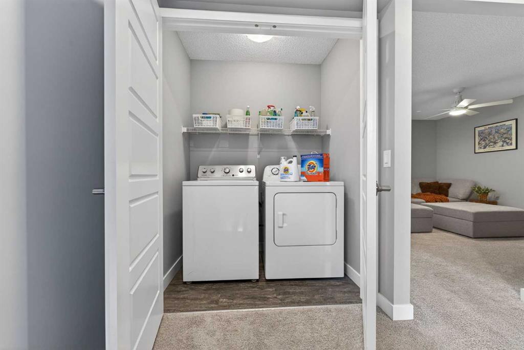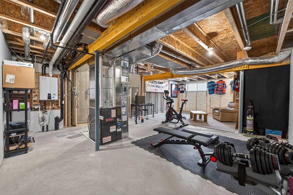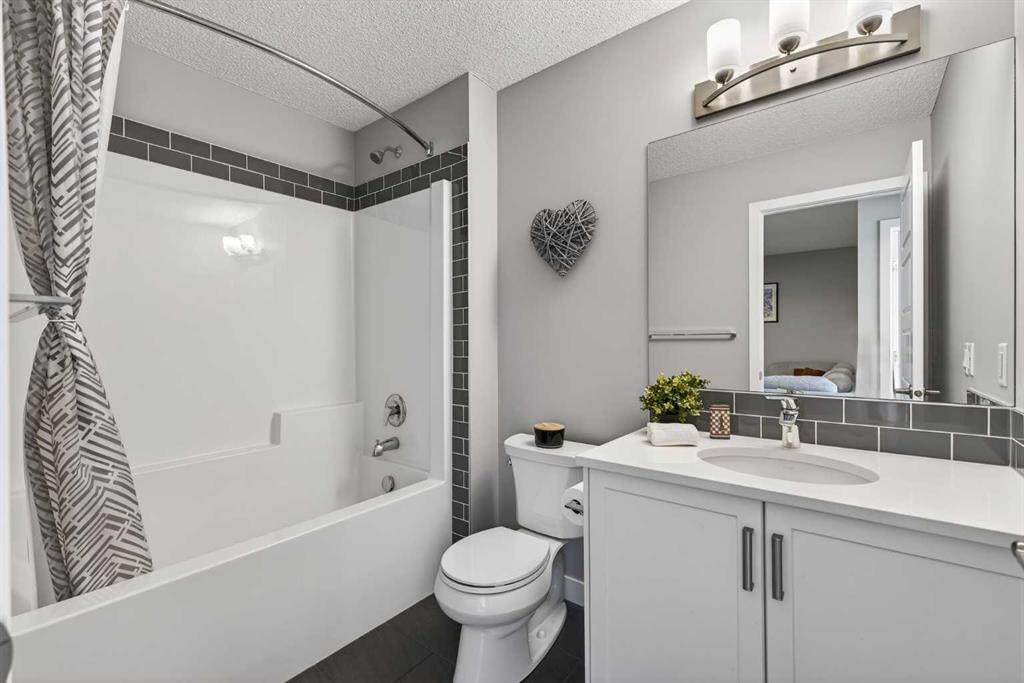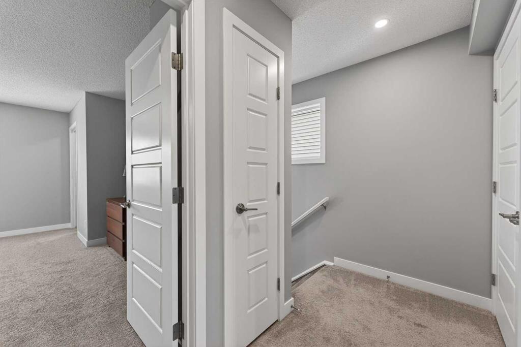 A duplex that doesn’t feel like one, thanks to a layout you don’t often find. With a bonus room upstairs and over 1,500 sqft, this one stands out right away. Built in 2018, this home offers the space, functionality, and flexibility that many buyers hope to find… but rarely do in this price range. Step inside to a bright, open-concept main floor with 9ft ceilings throughout, where the kitchen, dining, and living areas come together seamlessly, creating an amazing space to entertain and for everyone to feel connected. The kitchen is both stylish and practical, complete with quartz countertops, stainless steel appliances, an oversized central island, under-cabinet lighting, a classic subway tile backsplash, and an amazing walk-in pantry for added storage. Upstairs is where this home truly separates itself. In addition to three generously sized bedrooms, you’ll find a bonus room! A feature not often available in similar duplex layouts. Whether you need a home office, playroom, or additional lounge space, this flexible area adds real everyday value. You’ll also appreciate the convenience of side-by-side upper-floor laundry, along with a well-appointed primary bedroom featuring a large walk-in closet and its own ensuite, with a shower. The two additional bedrooms are positioned at the front of the home, providing added privacy for the primary, and are both a great size for kids, guests, or whatever suits your needs. These bedrooms share a full bathroom complete with a tub. The undeveloped basement offers excellent future potential and is already being enjoyed as a gym and hangout space. It also features hot water on demand and is roughed-in for a future bathroom, giving you the option to expand and add value over time, and is pre-wired for solar and radon mitigation, offering added flexibility and peace of mind. Outside, the low-maintenance composite deck with metal railings creates the perfect setting for summer evenings, while the fenced backyard offers just the right amount of space for kids, pets, or entertaining, without the upkeep of a larger lot. Aspen columnar trees were planted last summer and will continue to mature, offering added privacy as they fill in through the spring and summer, along with beautiful colour in the fall. The single attached garage is drywalled, insulated, and painted, and is currently set up as a functional workshop and storage space, plus there is additional driveway parking. Located within walking distance to scenic ponds and pathways, and just minutes to Deerfoot Trail for an easy commute into Calgary, this home offers a really convenient lifestyle. You’re also close to amenities like CrossIron Mills, along with a pump track over in Lanark Landing, plus all the everyday shopping, dining, and services Airdrie has to offer. With a layout that just makes sense, modern finishes throughout, and a location that offers both lifestyle and convenience, this home delivers exceptional value in today’s market.
