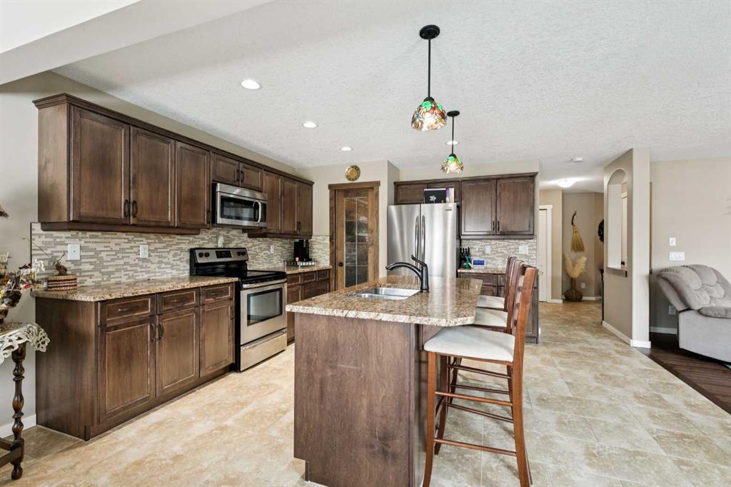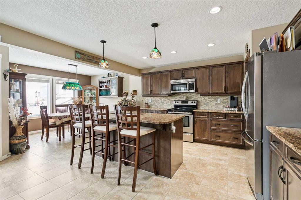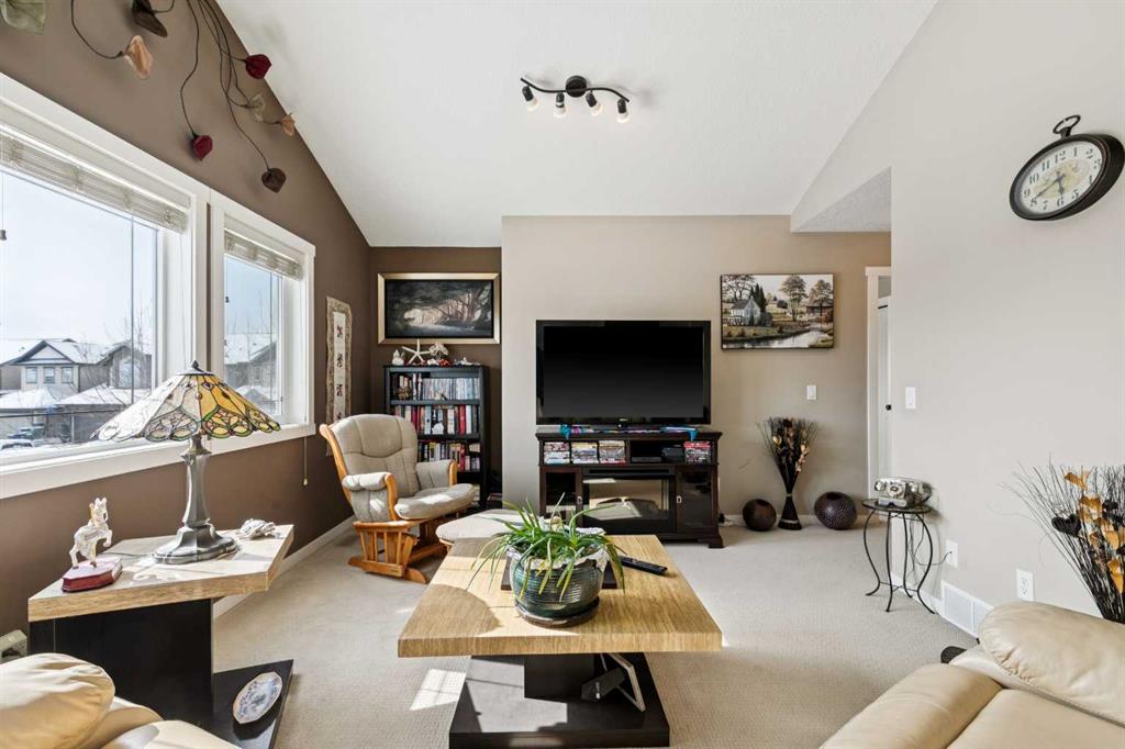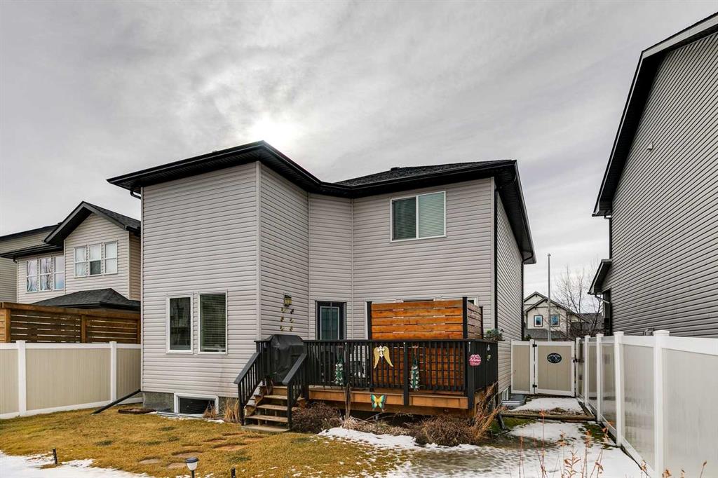 ***NEWLY PRICED***Meticulously maintained and lovingly cared for, this beautifully appointed two-storey home in the coveted King’s Heights is being offered by its original owner. Built in 2011 and purchased directly from the builder, this property presents a rare opportunity—homes on this quiet street seldom come to market, with the last sale occurring in 2021. From the moment you step into the spacious foyer, you’ll appreciate the thoughtful layout designed for everyday family living. The open-concept main level blends connection and functionality seamlessly. The kitchen is both practical and elegant, featuring custom cabinetry, granite countertops, stainless steel appliances, a large central island with breakfast bar, and a walk-through pantry that connects directly to the mudroom and garage—making busy mornings and grocery runs effortless. The mudroom is a true highlight for growing families. Designed as a functional transition space, it offers ample room for coats, backpacks, sports equipment, and boots—keeping daily life organized and the main living areas clutter-free. With direct access to the pantry and kitchen, the flow is both intentional and efficient, perfectly suited for busy households. A separate dining area offers generous space for family gatherings and celebrations, while the inviting living room with a gas fireplace creates the perfect setting for cozy evenings together. Step outside to what can only be described as an urban sanctuary. The beautifully curated backyard is a gardener’s dream—private, peaceful, and thoughtfully designed. Whether enjoying long summer evenings on the patio, gathering around the firepit with friends, or watching children play, this outdoor space is ready to create lasting memories. Upstairs, the spacious primary retreat comfortably accommodates a king-sized bed plus a seating area. The spa-inspired 5-piece ensuite features a soaker tub, standalone shower, dual vanities, and a generous walk-in closet. Two additional large bedrooms and another full 5-piece bathroom provide ideal space for growing families. The vaulted bonus room, with its dramatic wall of windows, is flooded with natural light and offers the perfect space for movie nights, homework sessions, or relaxed family time. Oversized windows throughout the home, all complete with custom blinds, invite abundant natural light into every room. A convenient 2-piece powder room completes the main level. The unfinished basement offers a blank canvas—an expansive space waiting for your creativity to design additional living areas. Located just steps from ponds, walking paths, parks, schools, and shopping, this home combines space, thoughtful upgrades, and lifestyle in one of Airdrie’s most sought-after family communities. A rare opportunity to put down roots in King’s Heights—move-in ready and built to grow with you for years to come. This home will not last long. Call your favourite realtor and book a private showing today!