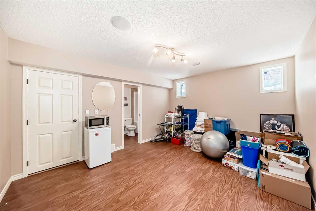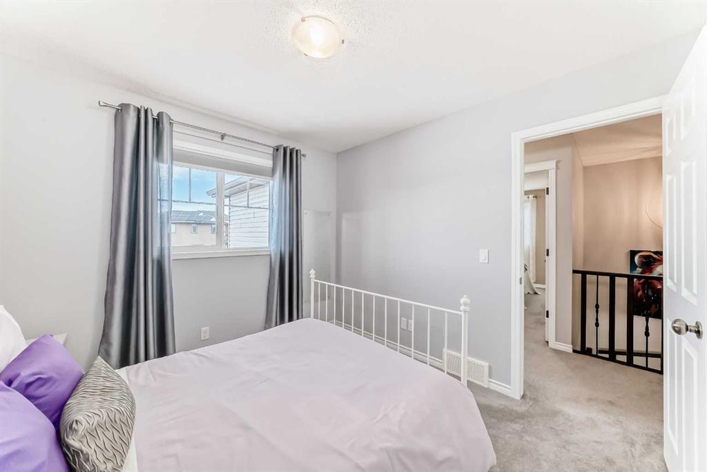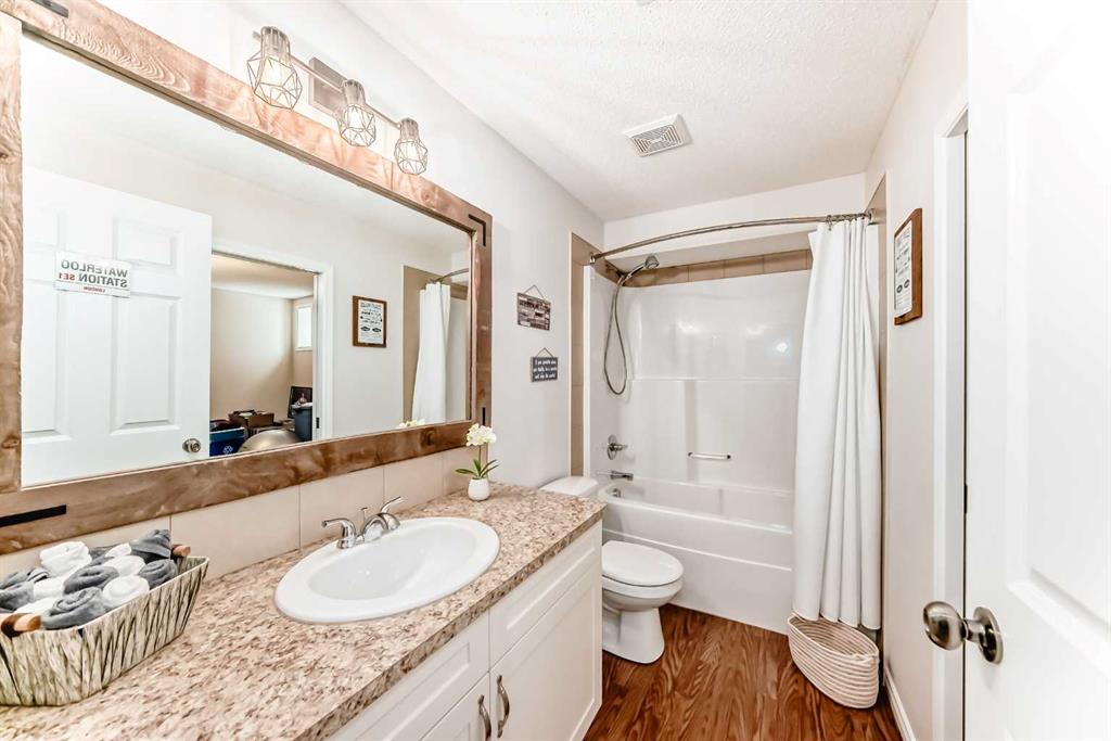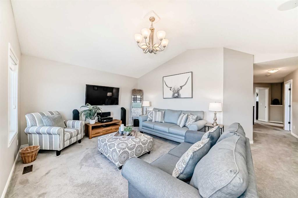 Welcome to this 4 bdrm, 3.5 bath, fully finished, immaculate one-owner home, built by Mckee Homes, in the beautiful, family-friendly, sought-after community of Ravenswood Airdrie. Situated with city greenspace to the north (no shovelling), walking paths behind, with a large sun-catching south/west-facing yard and a 2-tiered deck. With over 2,900 sq ft of finished living space and the flex/poss 5th bdrm in the basement, there is room here for a growing family. Walking in, you will love the open concept, which includes a 2-piece bath to the left, a door to the mudroom that connects to the laundry room, pantry and kitchen, and the garage entrance. Ahead is an office space, then into the open kitchen, dining and living room area. Large south/west windows fill the rooms with an abundance of natural light. The kitchen is for someone who loves to cook and entertain with modern white cabinetry, granite counters with ample counter space and an island. SS appliances, a 5-burner gas stove, a DBL Door refrigerator w water and ice maker and a large pantry make this plan ideal. The living room is vaulted and has a cozy gas fireplace with a fan and a stone front, and the dining area will fit a large table for family meals. Then through the sliding patio doors onto an extra-large 2-tiered deck w a hot tub, paved patio area with a firepit, privacy screen, extra power outlets, and a huge backyard for gardening and entertaining. Upstairs is a vaulted, bright bonus room, perfect for an extra TV room or play area for the kids. 3 bedrooms and 2 bathrooms. All the rooms are a good size, with the primary large enough to fit not only a king-size bed but also all your large bedroom furniture and your extensive wardrobe in the walk-in closet. The ensuite is very spacious with dual vanities on a long counter, a large separate
