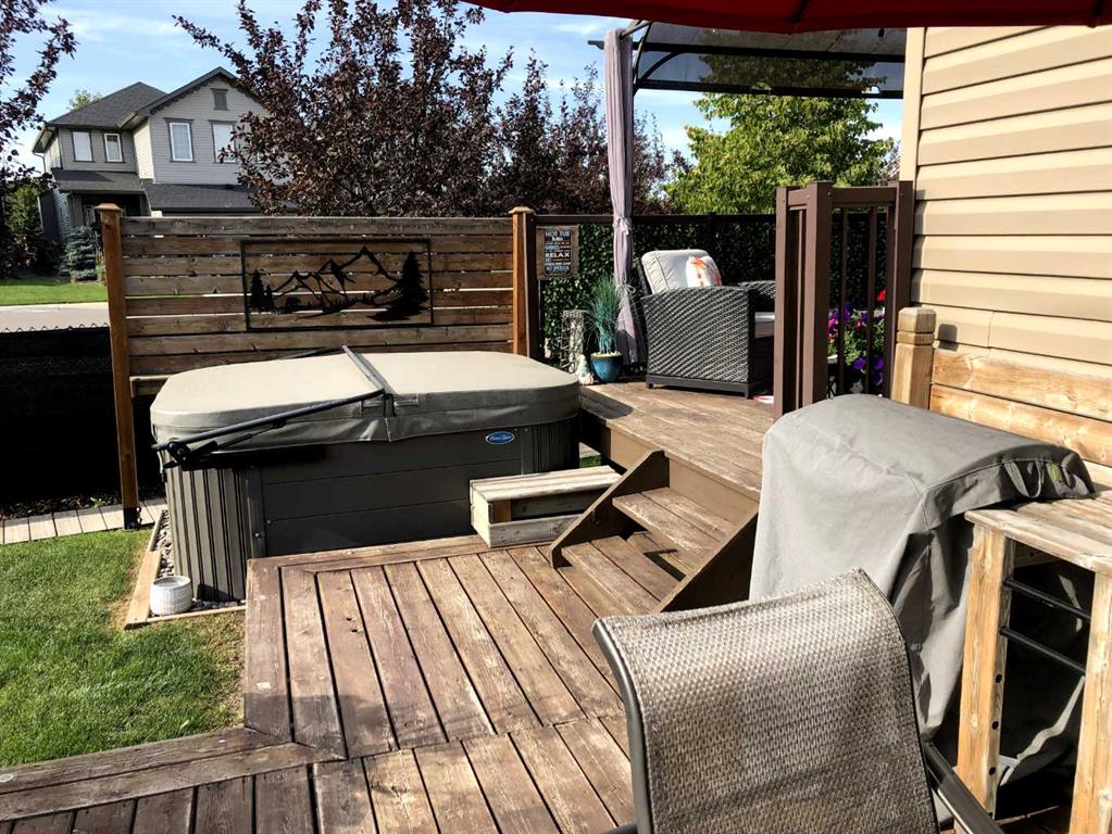 system, and built-in speakers throughout the house, including both back decks, the lower deck is also fitted with low level lighting. New roof shingles in 2021, Gas hot water tank 2020, carpets upstairs 2024, built-in Telus security system that the buyer can take over, the seller is paying $25 + tax a month. The smoke detector is also linked to Telus security. This home is a one-owner home and is immaculate and feels like new inside. You will not be disappointed. It's got quick access to parks, pathways, nearby schools, and shopping at the Yankee Valley Crossing Shopping Plaza, the Kingsview Plaza Sierra Springs Plaza. Access the rest of the city and Calgary through several nearby major roadways, including Deerfoot Trail, Yankee Valley Blvd. Downtown Calgary is a 23 min drive.