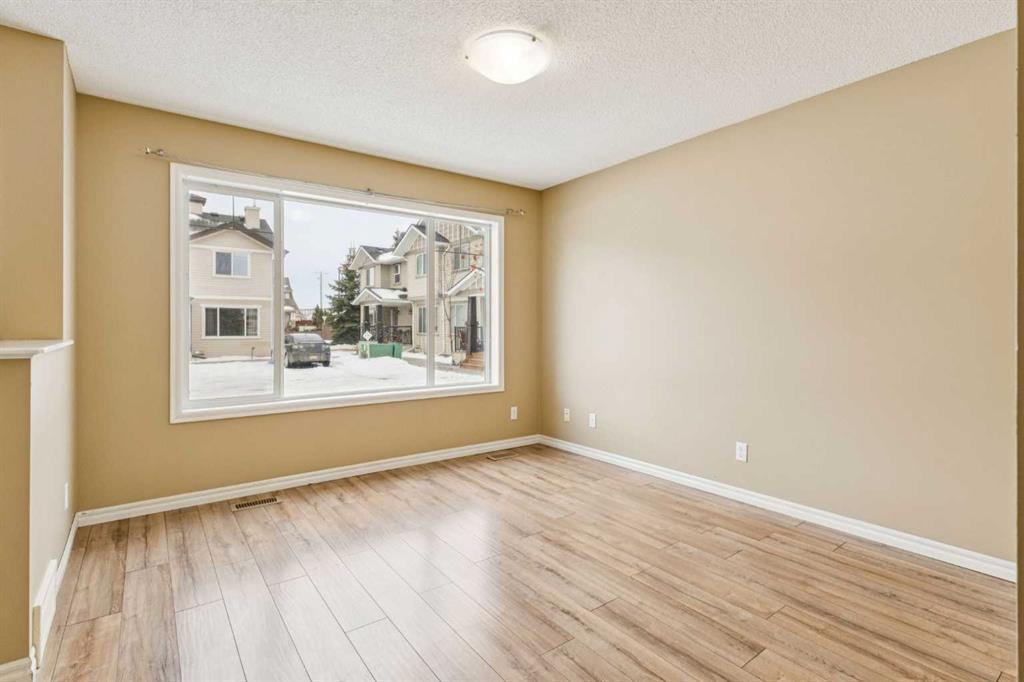 Welcome to the Patios of Sagewood! This lovely corner unit townhome with front porch charm features 3 spacious bedrooms and 2 titled parking stalls. The main floor is bright and open - being an end unit means extra windows with lots of natural light. The kitchen and dining area are open concept with laminate flooring. The kitchen boasts stainless steel appliances, an island and a pantry for extra storage. French doors in the dining area lead to your private backyard patio. There is even a front porch where you can sit and watch the kids play. The primary bedroom upstairs has a full ensuite and walk-in closet. There are 2 additional bedrooms upstairs and a second full bath. The basement is unfinished and perfect for storage. Call today!