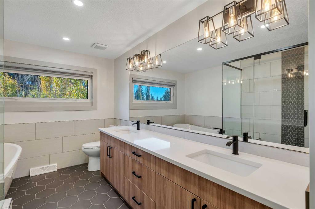Welcome to 9816 Austin Road SE. Tucked away on a quiet, tree-lined street, this extensively upgraded four-bedroom, three-bathroom home combines modern luxury with timeless design. Every detail has been thoughtfully planned and professionally renovated—nothing was overlooked. From the moment you arrive, the stunning low-maintenance front garden and freshly stuccoed exterior set the tone for what’s inside. Step through the front door and you’re greeted by an impressive open-concept living space featuring vaulted ceilings, exposed beams, and a custom fireplace that anchors the room in warmth and style. The chef-inspired kitchen is equipped with high-end finishes, premium cabinetry, and an elegant flow perfect for both entertaining and everyday living. Upstairs, retreat to your luxurious primary suite with a walk-through closet leading to a spa-inspired five-piece ensuite—complete with soaking tub, double vanities, and top-tier fixtures. A second spacious bedroom and full three-piece bathroom complete the upper level. The lower level continues to impress with two additional bedrooms, a modern three-piece bathroom, laundry area, and a large recreation room ideal for movie nights or a home gym. No detail was spared in this transformation. Extensive front landscaping, a new roof (2023), and prior renovations including newer windows, furnace, hot water tank, kitchen, bathrooms, flooring, and that incredible ensuite—this home truly has it all. If you’re looking for a move-in-ready home in one of Calgary’s most desirable, family-friendly neighborhoods, 9816 Austin Road SE delivers craftsmanship, comfort, and character in every square foot.