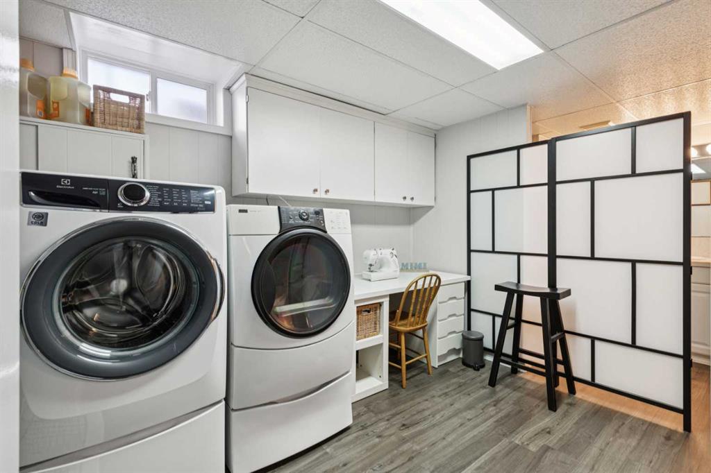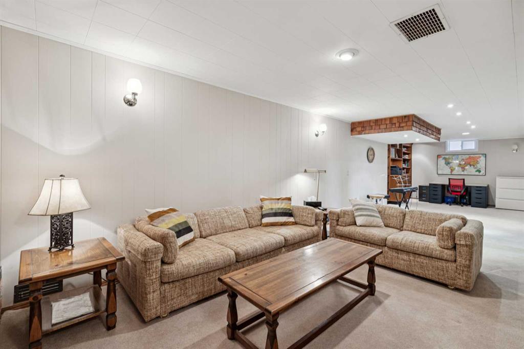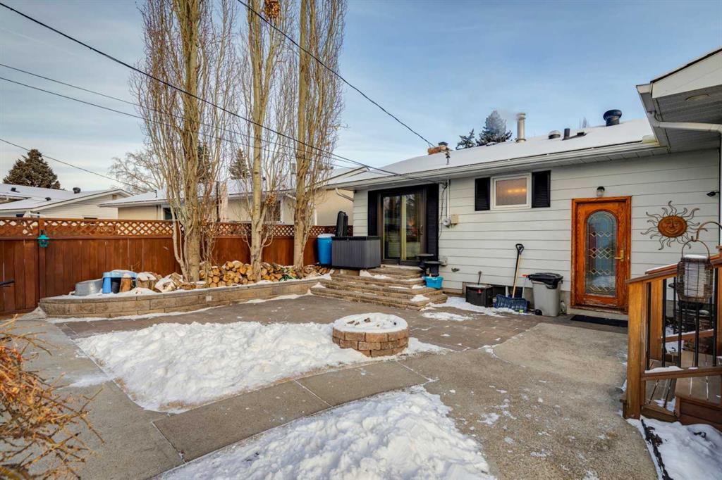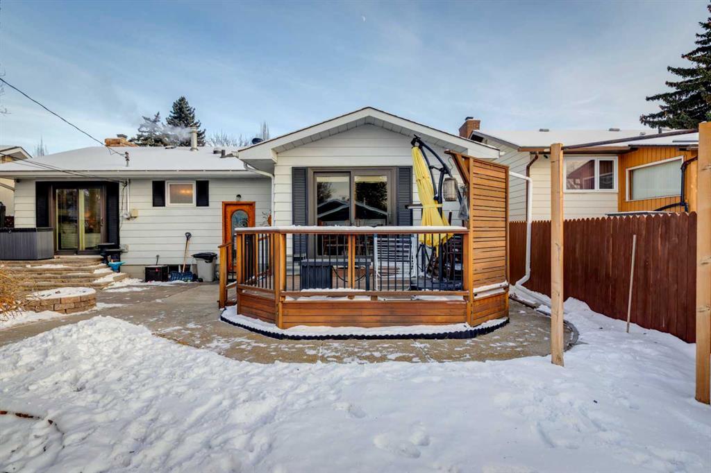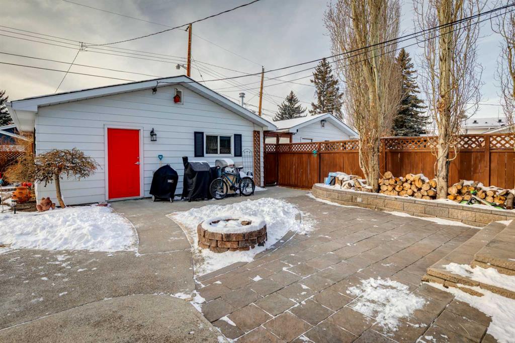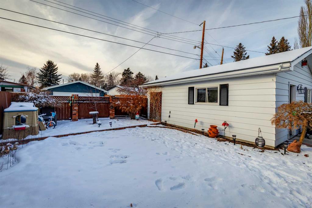 This well-cared-for bungalow offers a welcoming layout and practical upgrades in a location that’s hard to beat. Step into a defined foyer with space for coats and shoes before moving up into a sun-filled living room, where large windows and original hardwood floors create a bright, comfortable space ideal for everyday living or entertaining. Down the hall are three bedrooms, including two generous secondary rooms with closets and great natural light, plus a full bathroom with a skylight, linoleum flooring, and convenient access from the hallway. The primary bedroom is set apart for privacy, featuring a ceiling fan, a 2-piece ensuite, and sliding doors that open directly to the backyard. The kitchen and dining area offer excellent functionality with ample cabinetry, a movable island for added prep space, full-size appliances including a wall oven and microwave, an electric cooktop, a nearly new dishwasher, and a recently replaced fridge. Sliding doors off the dining area lead to the deck, bringing in more light and making indoor-outdoor living easy. The fully finished basement expands your living space with a large recreation room, built-in storage, a cozy gas fireplace, and a Murphy bed for guests that tucks away when not in use. A combined utility and laundry room includes a newer washer, a 3-piece bathroom, and flexible space for storage or hobbies. Outside, the fully fenced backyard is thoughtfully landscaped with a deck, fire pit, stone pathways, underground sprinklers, and easy access to the oversized detached garage (22' by 23'5"). A paved alleyway provides convenience for garage access. As an additional perk, the garage roof was replaced just 2–3 years ago. Additional highlights include full-house air conditioning, recently cleaned carpets, tile and wood flooring where practical, and close proximity to public and charter schools, IKEA, Costco, and everyday amenities. Located in Acadia, this home is part of a mature, tree-lined community known for its strong sense of neighbourhood, excellent access to transit and major routes, abundant parks, and a central Calgary location that makes commuting and daily errands quick and convenient.