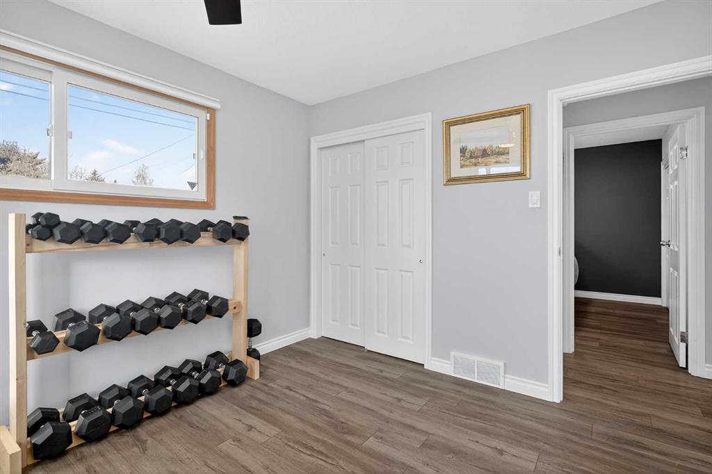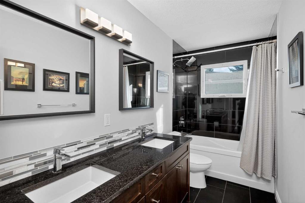 Welcome to this beautifully updated bungalow located in the sought-after community of Acadia, one of Calgary’s most established and family-friendly neighbourhoods. Known for its mature tree-lined streets, excellent schools, and unbeatable central location, Acadia offers the perfect balance of comfort, convenience, and community charm. This thoughtfully updated home features new triple-pane windows throughout the main level, along with a new egress window in the basement, and the added benefit of solar panels to help improve energy efficiency. The main floor has been opened up to create a bright and inviting open-concept layout, highlighted by a spacious living room with a large bay window that fills the space with natural light. The kitchen is equipped with stainless steel appliances and flows seamlessly into the dining area, which could easily be converted back into a third bedroom if desired. Two generously sized bedrooms and a beautifully updated bathroom complete the main level, featuring quartz countertops, dual sinks, tile flooring, and a shower/tub combination. The fully finished basement offers additional functional living space with a private office, a large primary bedroom with a large window, a walk-through closet, and a well-appointed 4-piece ensuite with dual sinks and a relaxing soaker tub. You’ll also find a large craft or storage room, perfect for hobbies or extra organization. Step outside to the private west-facing backyard, a true gardener’s dream filled with established perennials, a convenient storage shed, and a beautiful wood-heated hot tub—creating the perfect outdoor retreat to relax, entertain, and enjoy the afternoon and evening sun.