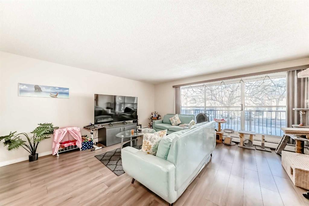 Welcome to Hilltop House! This spacious 750 sq. ft. one-bedroom unit in a quiet 25+ adult living complex offers the perfect blend of convenience and comfort in a prime central location. Situated on the main level for easy access, this unit features modern laminate flooring throughout and a bright, expansive living room that opens through massive patio doors to a large private patio—perfect for outdoor relaxation. The functional layout includes a well-equipped kitchen, Electric cooktop is replaced last year, a dedicated dining area, and a generously sized master bedroom with ample space for a king-size set, complemented by a bathroom featuring a deep soaker tub. Practicality is built-in with a large in-suite storage room, an assigned outdoor parking stall conveniently located right out front, and the common laundry room situated just next door. This property is a dream for investors or first-time buyers, as it is currently tenant-occupied at $1,600/month with a reliable tenant who is willing to stay, ensuring immediate and stable rental income. With low condo fees of $440.96 covering everything except electricity, and a location within walking distance to the LRT station, shopping, and downtown, this centrally located gem is a must-see opportunity.