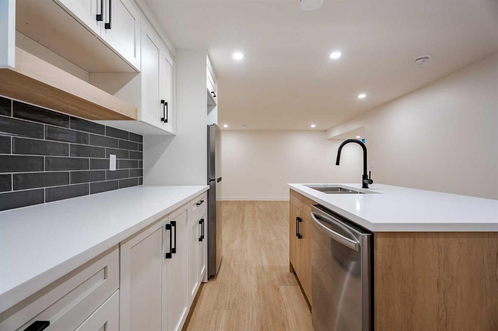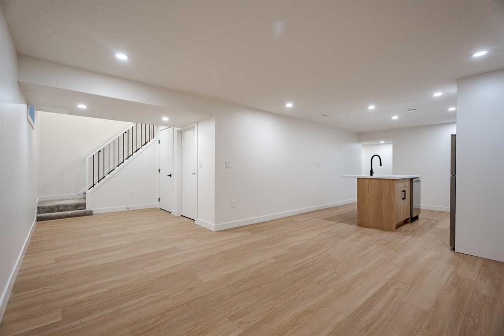 From the moment you arrive, the home’s stunning curb appeal sets the tone. Board and batten siding, custom exterior lighting, and large windows create a timeless modern aesthetic. Inside, a spacious entryway welcomes you into the open-concept main floor, where warm luxury vinyl plank flooring flows seamlessly throughout. The inviting living room features a custom fluted fireplace and a large picture window that fills the space with natural light. At the heart of the home is the beautifully designed kitchen, showcasing ample shaker cabinetry, a textured island with quartz countertops, a built-in pantry, and stainless steel appliances. The dining area is highlighted by a large light fixture and a sliding patio door that leads directly to the backyard. Down the hall, a stylish 3-piece bathroom with custom tile-work adds a touch of everyday luxury. The primary retreat offers space for a king-sized bed, a custom walk-through closet with built-in cabinetry, and a private spa-inspired 5-piece ensuite featuring a dual vanity, freestanding tub, and glass shower. An additional bedroom with a large window and closet completes the main level. The fully finished basement is equally impressive, offering a spacious recreation area perfect for relaxing or entertaining. A sleek kitchenette with new stainless steel appliances, a modern 4-piece bathroom, and two large bedrooms provide incredible flexibility for extended family, guests, or additional living space. A private laundry and utility room complete the lower level. Step outside to enjoy the generously sized yard, complete with a concrete patio and gas line for summer BBQs. The oversized double garage with an extra-large overhead door is perfect for car enthusiasts or additional storage. Stylish, functional, and completely move-in ready, this one-of-a-kind property truly has it all. Book your private showing today and experience it for yourself.