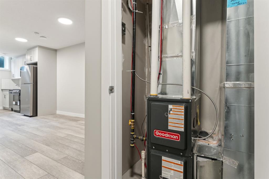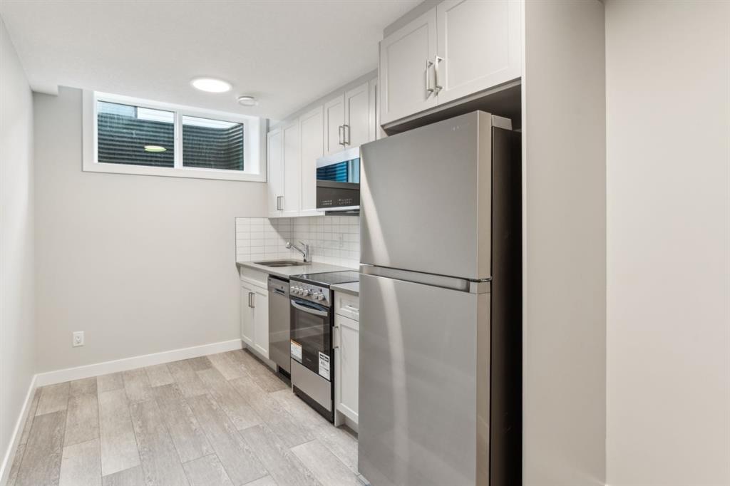 two additional bedrooms, a full bathroom, and upper-level laundry (with washer and dryer) complete the upper floor. The secondary LEGAL SUITE is 578 SqFt and has a private side entrance with a concrete walkway, making it ideal for tenants or extended family. It features high ceilings, large windows, spacious kitchen and eating area, in-suite laundry, and its own cozy living space—bright, functional, and designed for comfort. Enjoy Calgary’s summers with a private, fenced yard featuring a spacious patio perfect for enjoying a morning coffee, entertaining with friends and family or just a place to relax.Designed to be low maintenance and turnkey. A 20’ x 21’ detached double-car garage completes the package, offering convenience and additional storage.Don’t miss your chance to own a home that’s as practical as it is beautiful—with income potential, modern finishes, and move-in ready condition, this property truly has it all. This complex is home to only 19 units (with NO HOA OR CONDO FEES) and is surrounded by green space, parks & playgrounds. Walking distance to schools, shopping and transportation this location is hard to beat. Call to book your private tour or come visit us during our Showhome hours.