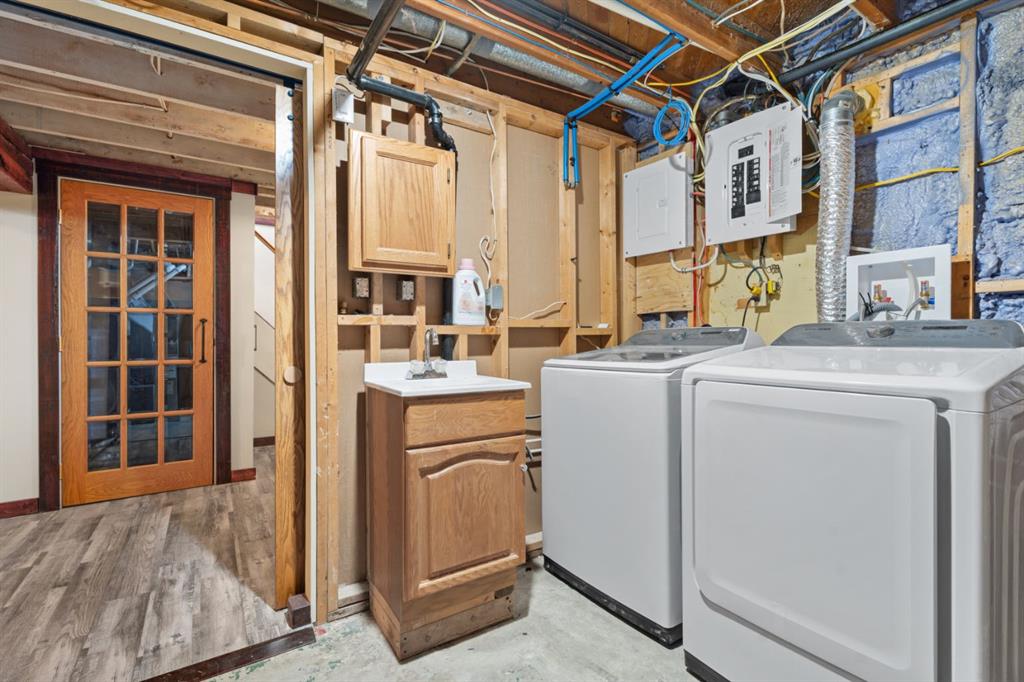 Step outside and you’ll find a backyard that truly sets this property apart. Enjoy a covered patio for year-round use, a beautiful slate water feature that adds a touch of tranquility, and a newer composite deck built for low-maintenance living. The space is complete with a double detached garage, alley access, an additional parking area ideal for an RV, and a convenient storage shed.