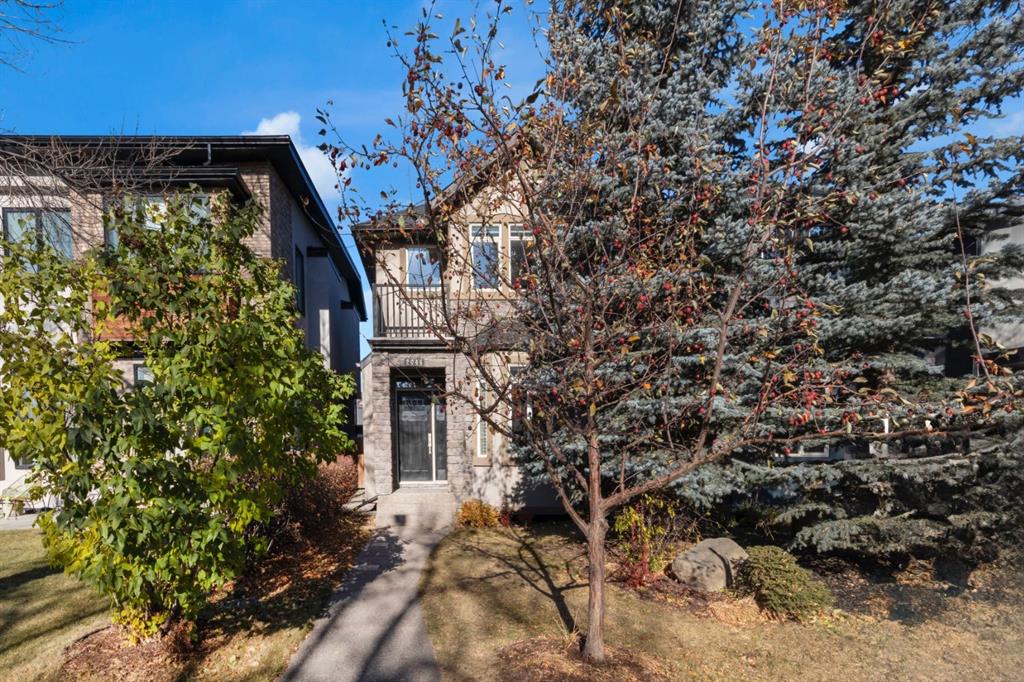 Beautiful family home located on a quiet tree-lined street in the sought after community of Altadore. This spacious 2-storey, 4 bedroom house has a great layout with many standout features including the elegant curved staircase with open risers, 3 gas fireplaces, 3 skylights, built-in cabinetry, built-in speakers, and Hunter Douglas blinds throughout. Brand new hot water tank (November 2025) and roof shingles replaced in 2024. Upon entering the home you will notice the natural light throughout, quality finishing details, and functional layout with spacious room sizes. The foyer has a custom built-in closet, and leads to the bright dining room, roomy enough to accommodate a large dining table along with additional space for a seating area or other dining room furniture pieces. The kitchen offers granite countertops, espresso-stained cabinetry including a built-in wine rack and end of island cabinetry, breakfast bar seating at the island, reverse-osmosis water system, and stainless steel appliances including a Jenn-Air gas range and refrigerator. The kitchen opens onto the living room featuring a gas fireplace, full built-in cabinetry wall, and large windows to enjoy the view of your private yard. The powder room completes the main level. On the upper level you will find the bright primary suite with vaulted ceiling, south-facing balcony, built-in cabinetry, dual-sided fireplace and elegant ensuite with heated floors, dual vanities, soaker tub, and full tiled shower with rain drop shower head and glass door. The two additional bedrooms upstairs are good sizes and are located near the 4-piece bathroom that has one of three skylights, fully tiled shower/tub combo and vanity with granite countertop. Convenient upstairs laundry with storage and a drying rod, and 2 large linen/storage closets complete the upper level. The fully finished basement includes the 4th bedroom, full bathroom with heated floor, family room with gas fireplace and built-in cabinetry, wet bar with beverage fridge and wine shelving, and utility room. Fully fenced private yard with landscaping, composite deck and a double garage with storage shelving. This location has so much to offer! Enjoy Glenmore Athletic Park, River Park, several schools within walking distance, all the amenities that Marda Loop has to offer and easy access in and out of the community. Homes like this do not come on the market in Altadore often so do not delay viewing this great property!