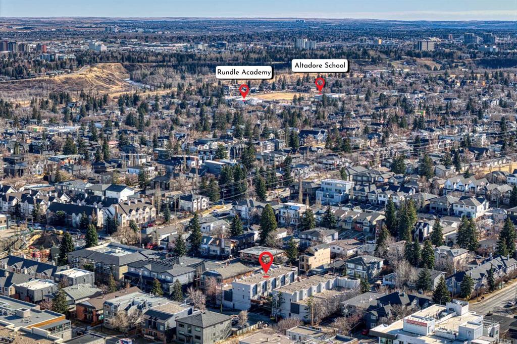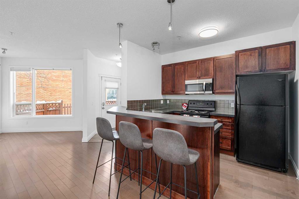 Welcome to inner-city living in the heart of Altadore, just steps from everything that makes Marda Loop one of Calgary’s most vibrant and sought-after communities: shopping, restaurants, Mount Royal, bike paths, and Sandy Beach and River Park. This well-managed 2-storey townhome offers outstanding value and the rare bonus of an OVERSIZED ATTACHED SINGLE GARAGE, giving you the privacy and convenience you won’t find in most inner-city condos. Located in the well-managed Spirit of Marda Loop 2 complex, this home is perfect for anyone looking to enter the market in a desirable community: first-time buyers, young professionals, or anyone looking to enjoy a walkable lifestyle with cafés, shops, restaurants, parks, and everyday amenities right outside their door. The building is pet-friendly (with board approval), making it an ideal option for pet owners who want inner-city convenience without compromise. Inside, the main floor features 9-FOOT CEILINGS and knockdown ceilings throughout, creating a bright, open feel. The living room is warm and inviting with a cozy GAS FIREPLACE, perfect for relaxing evenings at home. The functional kitchen includes a LARGE PANTRY for extra storage and flows nicely into the dedicated dining area, making everyday living and entertaining easy. Step outside to your private patio, ideal for summer evenings, morning coffee, or unwinding after a long day. The private entrance adds to the townhouse-style feel, offering a true sense of home rather than apartment living. Upstairs, you’ll find two generously sized bedrooms with LARGEWINDOWS that bring in beautiful natural light. The primary bedroom features a walk-in closet and a full ensuite, while the second bedroom is idealfor a guest room, home office, or roommate setup. A second full bathroom on the upper level adds everyday convenience. Additional features include a BRAND-NEW WASHER AND DRYER (2025), a NEW HOT WATER TANK (2025), and FRESHLY PAINTED througout giving you peace of mind for years to come. The oversized attached single garage comfortably fits your vehicle with extra room for bikes, seasonal items, or additional storage, or even for a second small car. There is plenty of street parking nearby for guests. If you’ve been waiting for the right townhome in Marda Loop with space, parking, and true walkability, this is an opportunity you won’t want to miss. Book your private showing today.