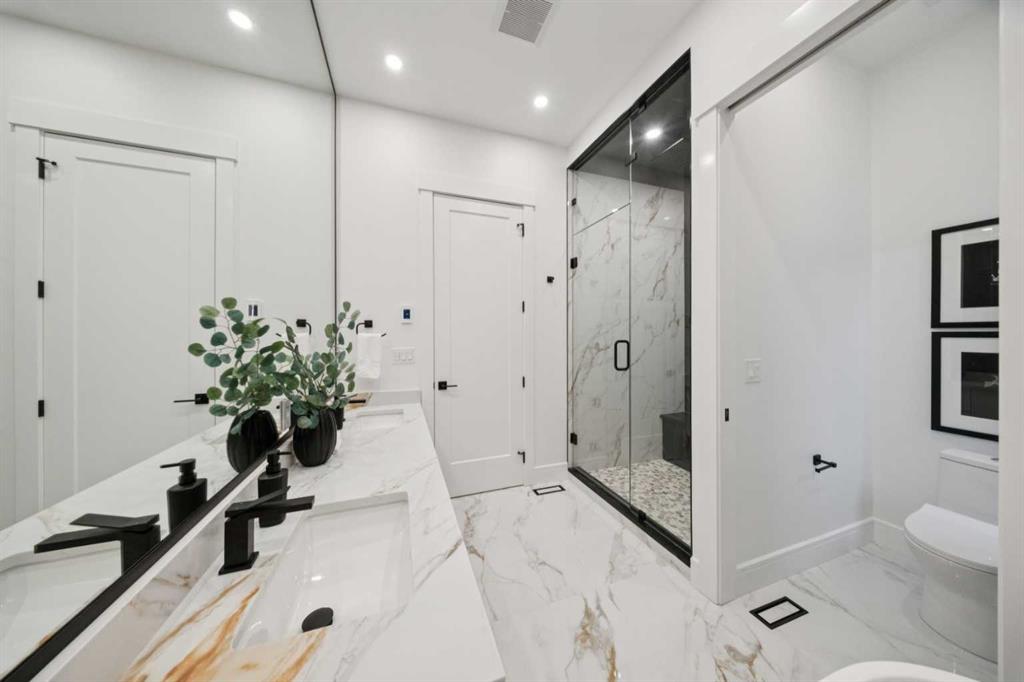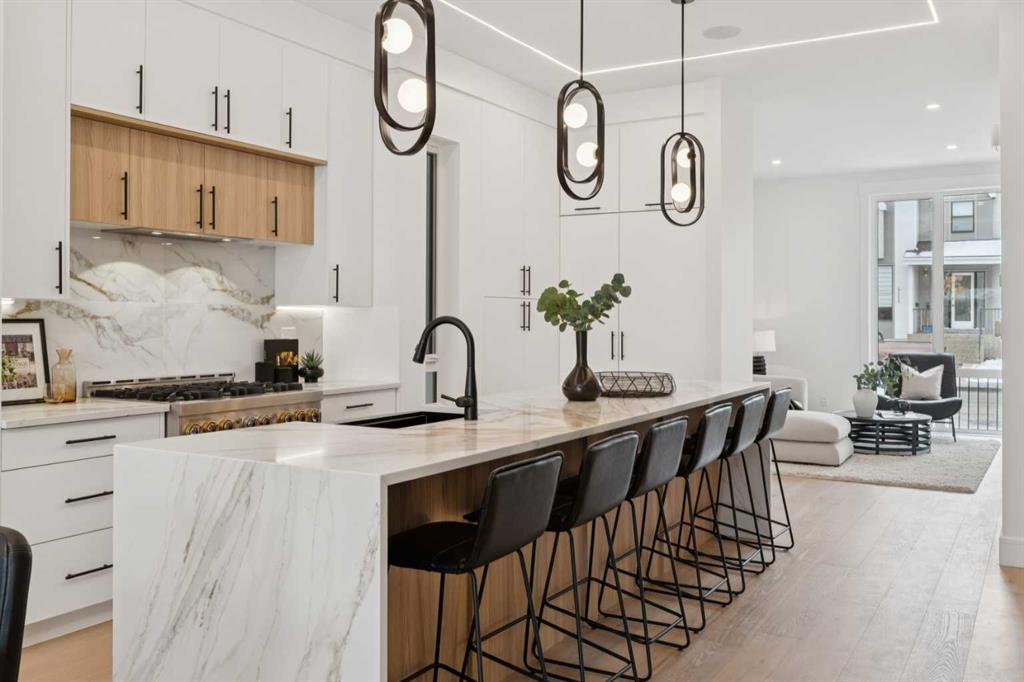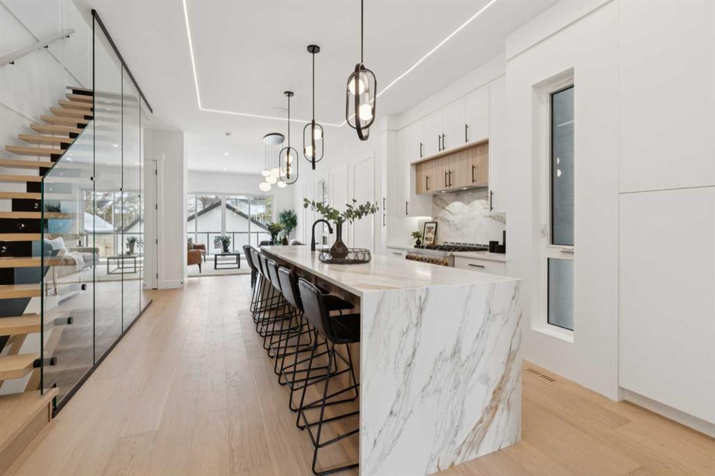 OPEN HOUSE on Saturday, April 11 between 1-3pm! Welcome to this exceptional home in the heart of Altadore, one of Calgary’s most sought-after inner-city communities, where modern design, high-end finishes, and an unbeatable location come together to create the ultimate urban lifestyle. Situated on an oversized, 124 ft deep lot, offering 2,926 sq ft of total developed living space. Thoughtfully crafted with both everyday living and entertaining in mind, this residence offers a bright, open-concept main floor filled with natural light, complemented by a stunning kitchen featuring waterfall countertops, a premium JennAir appliance package, and a large central island. The inviting living room is anchored by a sleek linear gas fireplace and oversized sliding door overlooking the back yard. The stunning open-riser staircase with elegant wood treads and full glass railings, creates a bright, airy focal point that sets the tone for the entire home and serves as a striking architectural statement. Upstairs, the home continues to impress with soaring 10 ft ceilings that elevate the sense of space and light throughout the upper level. The primary retreat is a true standout, featuring a beautifully designed walk-in closet and a spa-inspired ensuite, featuring a tiled steam shower, offers both comfort and modern elegance. The thoughtfully designed upper floor also includes a versatile bonus room area—ideal for a cozy lounge, study, or additional family space—along with well-appointed secondary bedrooms with walk-in closets. The fully developed basement offers a built-in TV media center that creates the perfect setting for movie nights or relaxing evenings. A sleek wet bar adds an elevated touch for entertaining, in-floor heating throughout the basement provides a warm ambiance year-round, while the smartly thought-out layout includes a spacious bedroom ideal for guests. In addition, there is a flexible room that can easily function as a home gym, kids’ playroom, or private office. Outside, enjoy a private outdoor setting with a large deck and a good sized yard along with an insulated and drywalled double garage. Situated in one of Calgary’s most desirable inner-city neighbourhoods, this home is just minutes from Marda Loop’s vibrant shops, cafés, and restaurants, while also offering quick access to River Park, Sandy Beach, and downtown.
