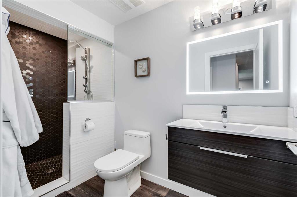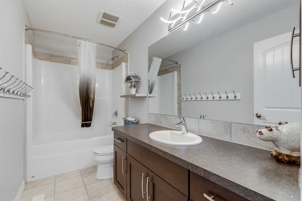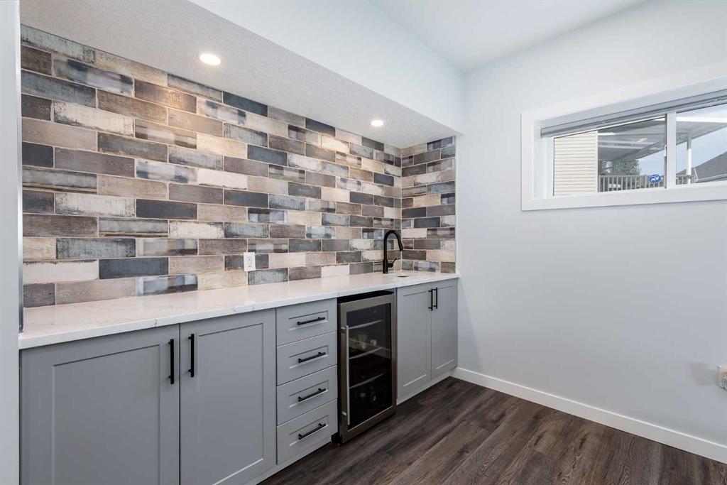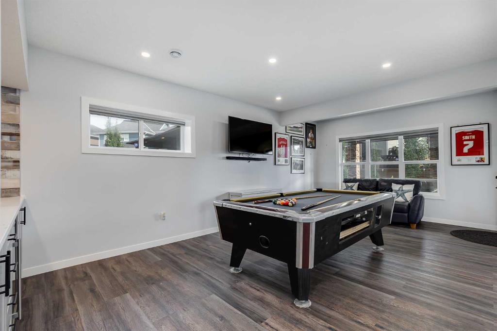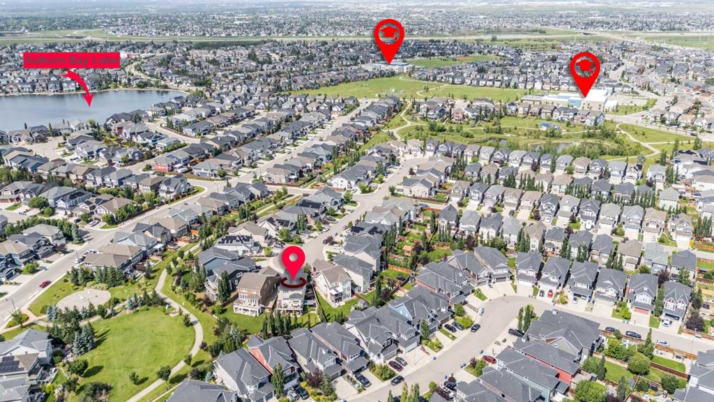 Set on a quiet cul-de-sac in the sought-after lake community of Auburn Bay, this stunning walkout home is perfectly positioned on a huge pie lot with a sunny south-facing backyard that backs onto greenspace and walking paths with beautiful mountain views. The location places you within a 10-minute walk to Auburn Bay Lake, plus just a quick drive to the South Health Campus, the world’s largest YMCA, and abundant shopping and dining options. Step inside to 9’ ceilings, oversized windows, built-in speakers and central air conditioning that create an inviting main level filled with comfort and natural light. The chef’s kitchen inspires culinary creativity with a centre prep island, a peninsula island with casual seating, stone countertops, stainless steel appliances, a gas cooktop, full-height cabinetry and a walk-in pantry for extra storage. A designer dining room flows seamlessly to the massive upper deck where you can easily entertain with beautiful mountain views as the backdrop. The living room combines warmth and style with its wood feature wall and gas fireplace, creating a relaxing setting for quiet evenings. A tucked-away powder room completes this level. Upstairs, a central bonus room sets the stage for family movie nights and separates the primary suite from the secondary bedrooms for ultimate privacy. The primary occupies its own wing and provides a serene retreat with space to unwind, a large walk-in closet and a luxurious five-piece ensuite featuring dual vanities, a makeup station, a deep soaker tub and a separate rain shower. Two additional spacious bedrooms, a full four-piece bath and the convenience of upper-level laundry complete this floor. The fully finished walkout basement extends the living space with a modern aesthetic and wide-open versatility for a home gym, media setup, games, hobbies and more. Then easily refill drinks and snacks at the sleek wet bar. This level also offers a guest bedroom and a contemporary three-piece bath with an indulgent multi-head shower. Outdoors, enjoy a rare yard size thanks to the pie lot, providing endless room for children and pets to play. A full-width upper deck with glass railings and stairs connects to a lower covered patio set on stamped concrete, ensuring comfortable outdoor living in every season. The yard is fenced, treed and private, making it ideal for both relaxation and play. Additional features include an oversized double attached garage with dual overhead doors. This home blends family functionality with executive finishes, all in a premier lake community where year-round activities and exceptional amenities are right at your doorstep!