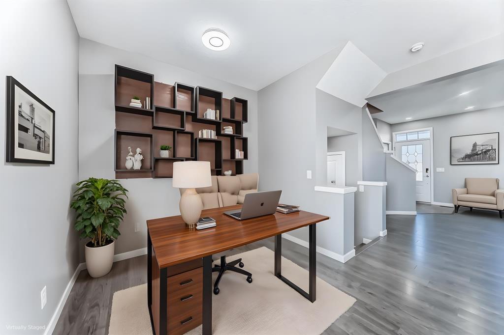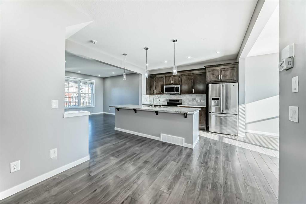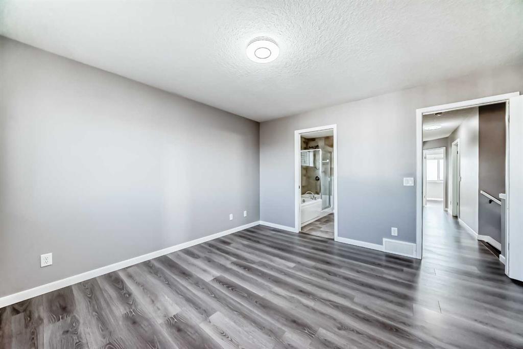Welcome to this beautiful family home in the heart of Auburn Bay! Beautifully developed living space — plus an additional in the undeveloped basement ready for your personal touch — this freshly painted, open-concept home offers comfort, functionality, and style. At the front, a sunny 19.5-foot porch invites you to enjoy your morning coffee or unwind in the evening. Step inside through the decorative glass door with a transom window that fills the entryway with natural light while maintaining privacy. The spacious living room features a large window and low-maintenance laminate flooring that flows seamlessly through to the kitchen and dining area. The modern kitchen is equipped with stainless steel appliances, plenty of cabinetry, and a massive island perfect for meal prep or casual dining. Under-cabinet and track lighting brighten the workspace, while a pantry provides added storage. Just across from the kitchen is a convenient office or study area — perfect for helping the kids with homework or setting up your own home library. The adjacent dining area enjoys views of the backyard through a large window, and a two-piece powder room is thoughtfully located near the back door for convenience. Upstairs, the primary bedroom is a true retreat with a private five-piece ensuite featuring a soaker tub, stand-up shower, and double vanity, along with a spacious walk-in closet. Two additional bedrooms and an upper-level laundry room make this floor ideal for family living. The lower level, complete with a large egress window, offers the potential to add a fourth bedroom or create a custom-designed living space. Outside, the backyard is ready for entertaining with a freshly painted two-tier deck — perfect for summer barbecues and family gatherings. There’s also ample space for a future double garage accessible from the paved alley. With its family-friendly layout, abundant natural light, and room to grow, this freshly painted Auburn Bay home offers the perfect blend of comfort, functionality, and modern living.