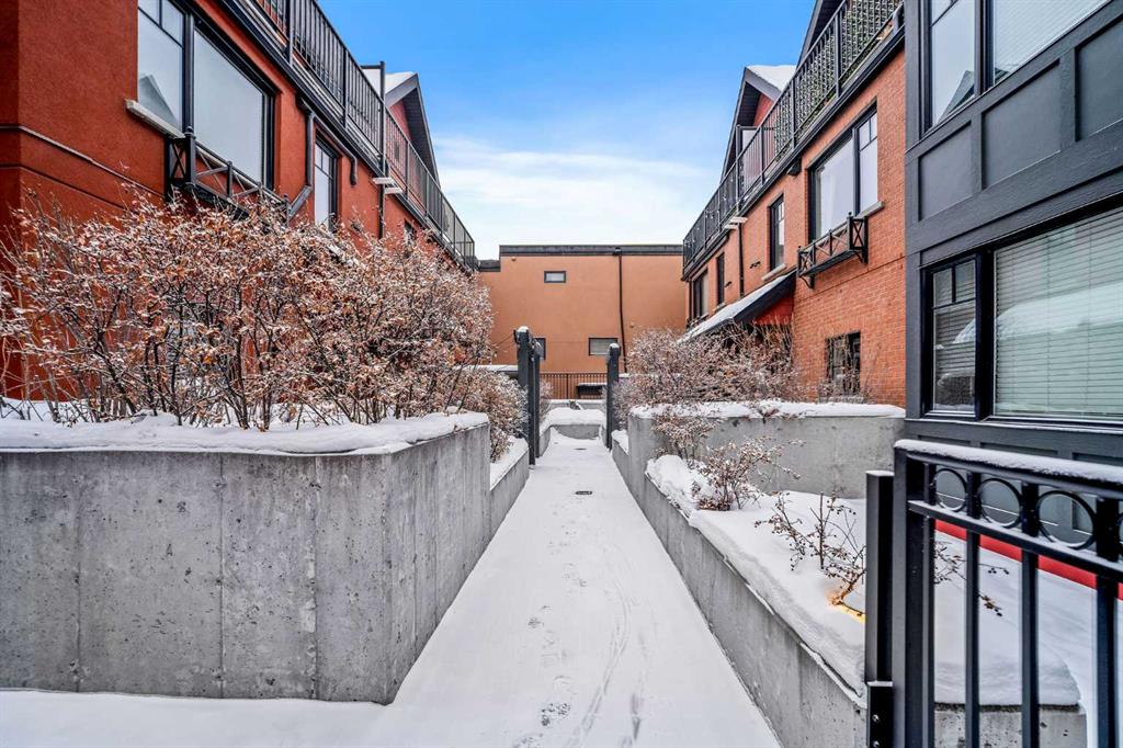 Three bedrooms, two bathrooms, dedicated storage, and titled parking come together in a boutique brick row building with subtle brownstone vibes and classic urban styling. This townhome blends vibrancy, privacy, and low maintenance living in one of Calgary’s most walkable locations. Just moments from the energy of 17th Avenue and the Beltline, you are surrounded by fabulous local dining, cafes, boutique fitness, and everything that makes inner city living so coveted. Tucked away from the street for added peace, the secure setting of the building creates an inviting atmosphere where, in the warmer months, neighbours often unwind on their own private terraces with barbecues or a glass of wine, adding a warm community feeling while maintaining personal privacy. Inside, this home offers the spaciousness of a traditional layout with the ease of condominium living. The modern kitchen features quartz counters, stainless steel appliances including a five burner gas range, generous cabinetry, a breakfast bar for casual meals, and the option to take dinner parties to the dining table that easily seats six. It all flows naturally into the inviting living area where a cozy gas fireplace anchors the room. The second level includes two comfortable bedrooms, a four-piece bathroom, and full size laundry. One more level up is the dedicated entirely to the primary retreat, the true showstopper of the home. This primary bedroom feels both serene and elevated with its soaring vaulted ceilings, wrapped in windows and offers a truly calming sense of space. A generous walkthrough closet offers abundant hanging space and leads to the relaxing spa inspired ensuite complete with double vanities, a glass shower, a deep soaker tub, and the added luxury of heated floors. Topping off this decadent level is the private balcony, perfectly positioned to overlook the front courtyard while capturing beautiful westerly views. The lower parkade entry level has a spacious flex or storage room which provides loads of shelving for effortless organization. This home also includes two additional outdoor lounging spaces; A charming backyard area offers a quiet spot for al fresco dining and relaxing, while the welcoming front terrace is ideal for morning coffee, evening wine, and summer barbecuing with friends. Small pets are welcome too (with board approval), and some owners have created a cute outdoor relief spot in their backyard - on leash or with board approved fencing, ideal for quick winter outings with your furry friend. Your secured and titled indoor/heated parking stall is conveniently located beside your parkade door with room for a bike. This beautifully maintained unit is also offered turn-key (move-in ready) with it’s furnishings & all kitchen items … for a seamless move. With only nine units in the building and close proximity to parks, schools, gyms, hot yoga, shopping, transit, and major routes, this home delivers elevated inner city living at its finest.