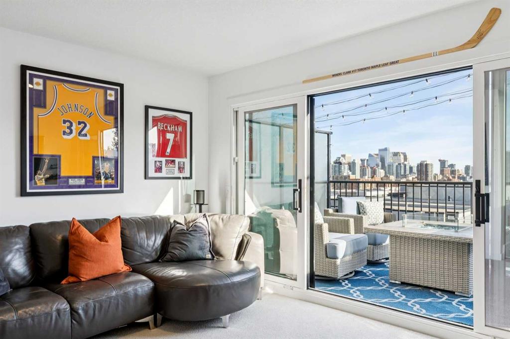 Experience elevated urban living in this stunning luxury townhome offering unobstructed views of Calgary’s downtown skyline. Sitting at 2,648 sq. ft. of thoughtfully designed living space, 3 bedrooms, 3.5 bathrooms, a rooftop loft and patio, a lower-level flex space, and a private yard, this home delivers a rare combination of luxury, space, and versatility. From the moment you arrive, the quality and attention to detail are evident. A west-facing front patio welcomes you in and sets the tone for the seamless indoor-outdoor lifestyle this home was designed for. Inside, the open-concept main floor is ideal for entertaining and features upscale finishes and extensive upgrades throughout. The dining area overlooks the front patio and flows effortlessly into the chef-inspired kitchen, complete with double islands, upgraded backsplash, stainless steel appliances, and exceptional storage. The spacious living room is anchored by a cozy fireplace and opens onto a private back deck with a gas line, perfect for summer grilling and relaxed evenings at home. Completing this level is a powder room perfectly placed adjacent to the kitchen for guests. The second level offers two generously sized bedrooms on each end of the home providing privacy and natural light throughout the day. The east-facing bedroom comes complete with a spacious 5-piece ensuite and the west-facing bedroom has access to the centrally located 4-piece This floor also includes convenient laundry with an upgraded stone countertop and an additional flex space ideal for a home office or reading lounge. The top floor is truly the showpiece. A spacious primary retreat features a walk-in closet and spa-inspired ensuite, while the adjoining upper lounge opens onto the spectacular rooftop patio. Complete with patio lighting and a fire table, this space feels magical and is the perfect setting to enjoy Calgary’s warm summer nights with the downtown skyline as your backdrop. The fully developed walkout lower level adds even more flexibility, offering a tandem attached garage and a bright flex room overlooking the fenced yard, ideal for a home gym, office, or creative studio. Mature trees and upgraded landscaping with stonework and a lower pathway enhance the outdoor experience, while three private patio spaces provide exceptional options for entertaining or relaxing. Additional features include central air conditioning, custom window coverings including blackout blinds in the primary suite, Lux windows throughout, upgraded epoxy flooring and custom garage cabinets, smart home capabilities, and numerous thoughtful upgrades that elevate everyday living. Located steps from trendy shops, restaurants, and cafés and just minutes to downtown, this home offers unmatched walkability without compromising space or luxury.