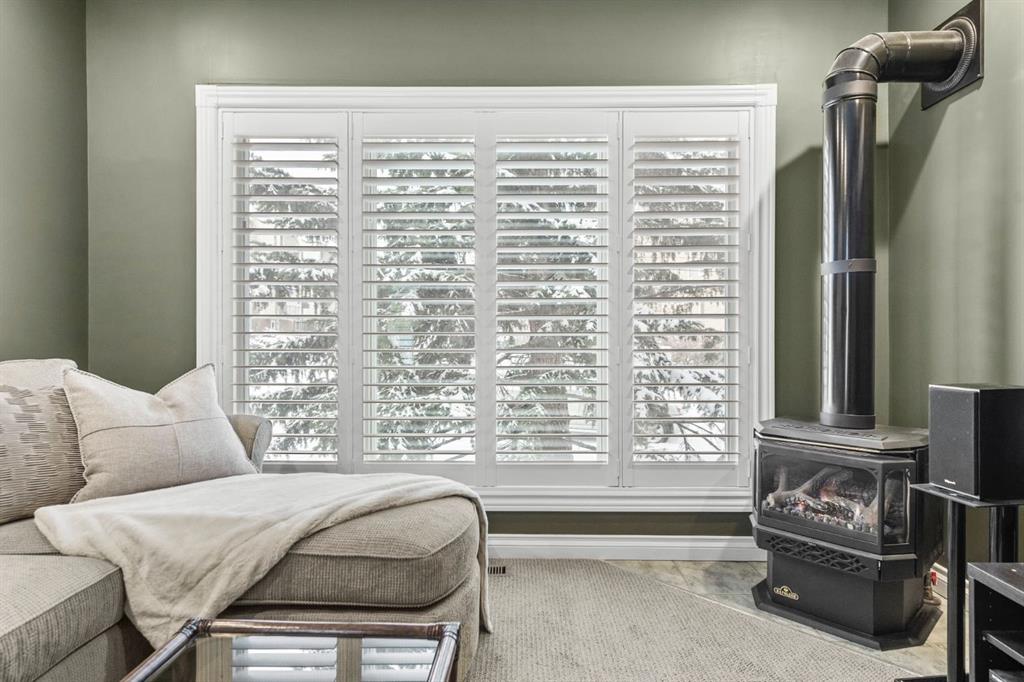 Between the main level and lower level, you’ll discover a fantastic and unique recreation room exclusive to this unit — ideal for a man cave, movie room, home office, or flex space. Complete with a second gas fireplace and beautiful California shutters, it’s a cozy and versatile retreat. The double attached garage truly feels like an extension of the home, featuring epoxy flooring, space for two vehicles, and two dedicated storage areas.