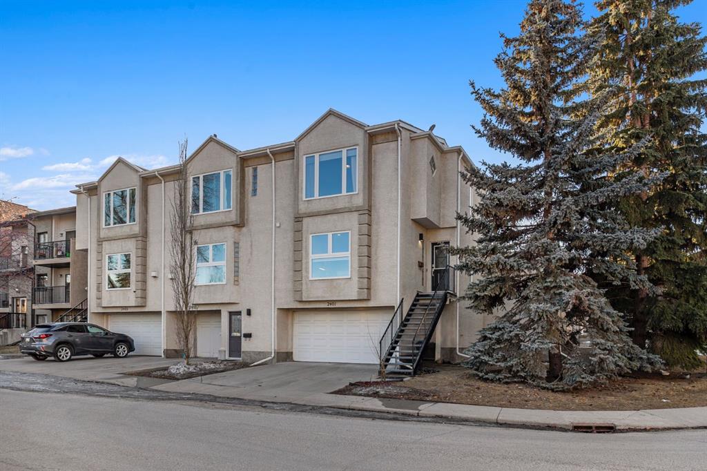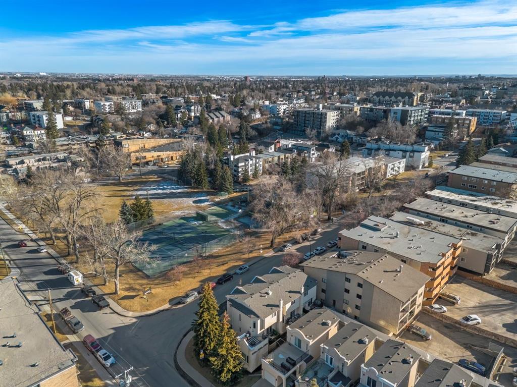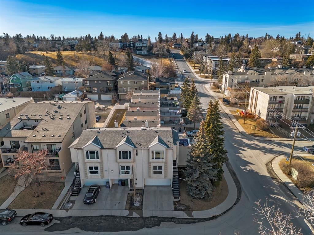 Fantastic end-unit townhome in the heart of Bankview offering a rare double car garage and an incredible rooftop patio! With 1,564 square feet of thoughtfully designed living space, this is an exceptional opportunity to live walking distance to downtown and directly across from a large park and tennis courts. Step inside to a welcoming open-concept main floor featuring 9-foot ceilings and a spacious layout designed for both everyday living and entertaining. The dedicated dining area easily accommodates a large table, while the impressive U-shaped kitchen offers stainless steel appliances, granite countertops, abundant cabinetry, and generous counter space. Enjoy beautiful park views right from your window as the kitchen flows seamlessly into the expansive living room, centred around a cozy gas fireplace with a designated nook for a desk or workspace.