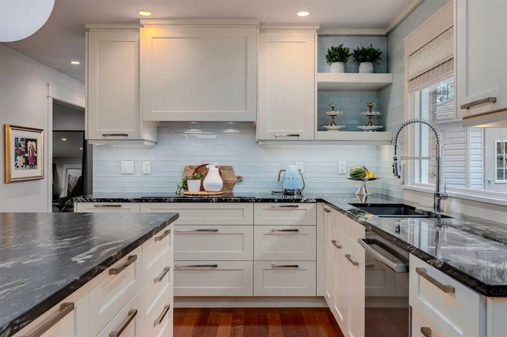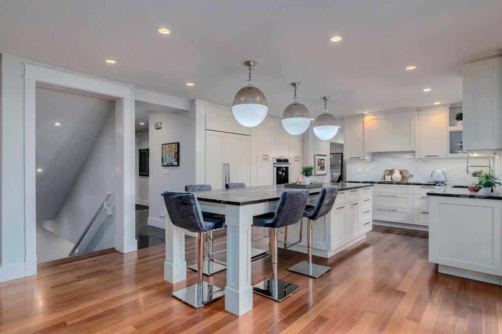 * SEE VIDEO * The ultimate outdoor lifestyle awaits! This magnificent Bayview executive home offers 4,285 sq. ft. of beautifully designed living space in one of Calgary’s most exclusive neighbourhoods. Perfectly positioned backing directly onto the Glenmore Reservoir and South Glenmore Park, it provides private access to the city’s extensive pathway system and unmatched recreational opportunities. Steps from the Sailing Club marina, bike pump track, and tennis and pickleball courts, this is a lifestyle of recreation, relaxation, and connection to nature—just minutes from downtown Calgary. Families will appreciate proximity to top-rated schools including the GATE and Science programs, while Glenmore Landing offers nearby shops and restaurants, and Rockyview Hospital adds everyday convenience. The location alone makes this a rare inner-city offering. Renowned designer Sally Healy guided the redesign and curated the interior finishings, elevating the home with timeless character and thoughtful function. The exterior features classic brick and cedar, a tile roof, and a spacious stone-coated back deck overlooking the park. Inside, rich Merbau site-finished hardwood floors lead through an elegant and welcoming layout. The gourmet kitchen impresses with a paneled Sub-Zero refrigerator, Thermador induction cooktop and double ovens, Bosch dishwasher, and built-in slide-door microwave. Custom maple cabinetry, titanium granite countertops, glass-tile backsplash, and Hicks pendant lighting complete the space. Expansive windows capture tranquil park views and flood the living and dining areas with light, while marble-surround fireplaces create warm, sophisticated gathering spaces. Upstairs, four spacious bedrooms offer privacy and comfort. The primary retreat features breathtaking park views, a spa-inspired ensuite with heated marble floors, Neptune jetted tub, Grohe rain shower with multiple heads, double sinks, and a grand walk-in closet with a central makeup station and “his and hers” sections. A second bedroom includes its own three-piece ensuite and walk-in closet—perfect for children, guests, or extended family. The third bedroom also features a walk-in closet, while the fourth is currently styled as a home office. A five-piece main bathroom and double linen closet complete the upper level. The fully finished lower level offers a warm, versatile space with plush Shaw carpeting, a cozy fireplace, and upgraded electrical for a future home theatre or arcade setup. Custom cabinetry is already roughed in for a wet bar, offering flexibility for future customization and entertaining. With three fireplaces, dual furnaces and air conditioners, updated mechanical systems, and meticulous attention to detail, this home blends beauty, efficiency, and comfort. More than just a home in Calgary’s most coveted location - book your showing today!
