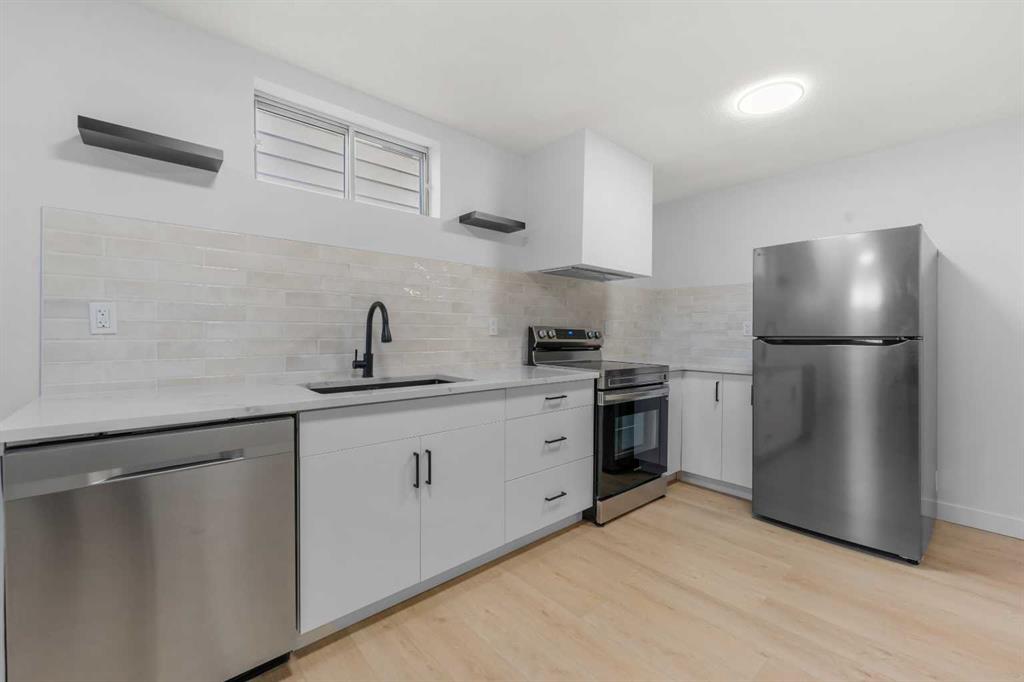 OPEN HOUSE SAT & SUN 1-4PM. Welcome to "Paradise at Berkley"! This 5 bed + 2.5 bath fully remodeled semi-detached Bungalow with a WALKOUT Basement has been thoughtfully REMODELED from the studs up in a modern farmhouse style. With a beautifully finished 2 bed + 1 bath illegal SUITE, this home offers the perfect balance of family living with a downstairs rental, or a multi-generational household. With Brand NEW Plumbing throughout the entire home, this property makes an incredible investment! Inside, the Open Concept floor plan is bursting with style. Superior craftsmanship is showcased throughout — from the massive Oak BEAM framing the kitchen paired with 8mm light oak vinyl plank flooring running seamlessly across the home, custom 'hidden' laundry tucked behind dual Barn Doors, and new windows that flood the home with natural light. Your guests will love cozy evenings around the custom electric fireplace, where elegant tilework and a tailored frame add warmth and sophistication. The chef-inspired kitchen is a showstopper, featuring a statement Custom Range Hood, Quartz Countertops with an undermount Composite Sink, light oak Floating Shelves, a spacious Black Fluted Island with breakfast bar, matte black Hardware, a striking cloudy tile backsplash — all tied together with a full suite of Stainless Steel Appliances. The main level features 3 spacious bedrooms and 1.5 baths, including a tranquil primary suite with a VIEW and walk-through closet leading to the private ensuite bath. The Walkout Basement offers a spacious 2 bed + 1 bath illegal SUITE, designed with the same attention to detail — featuring a second CUSTOM Kitchen with crisp white cabinetry, black matte Hardware, and modern finishes throughout. Enjoy the backyard, offering a private space for your family, or tenants and access to your oversized driveway. Whether you’re looking to live up, rent down, or run an Airbnb (as the current owners have successfully done over the summer months), your options are endless. Don’t miss your chance to own ‘Paradise at Berkley’.