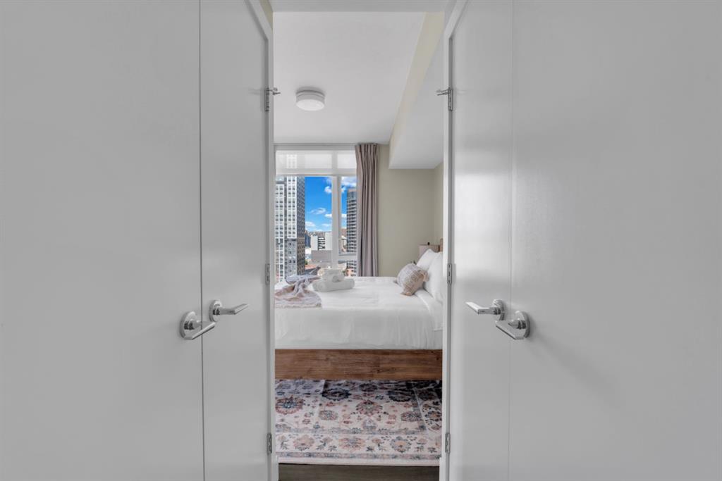 One of the few 900+ sq ft units currently available in The Guardian, this beautifully maintained condo stands out with its spacious layout, premium positioning, and stunning city-facing orientation. Located on the 14th floor in the highly desirable 09 stack, this home offers unobstructed skyline views of downtown Calgary and the Calgary Tower, filling the space with natural light through expansive floor-to-ceiling windows.