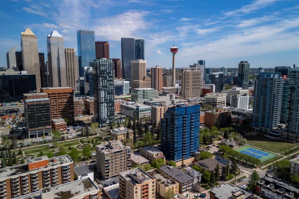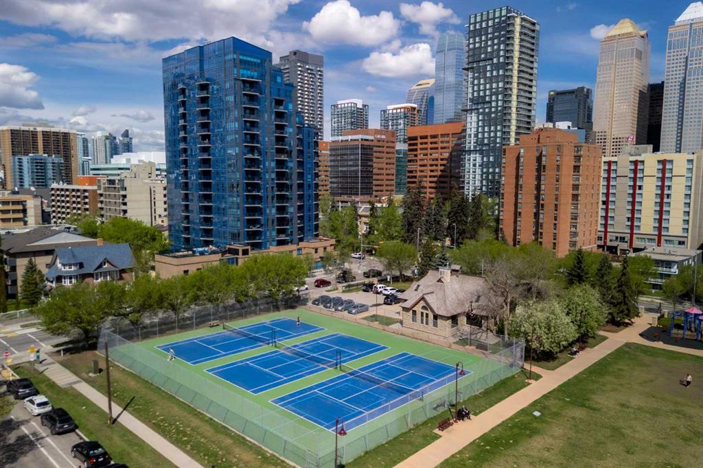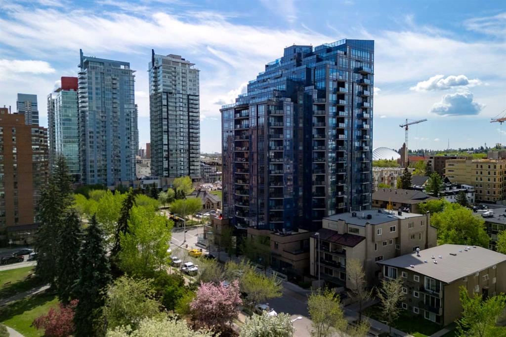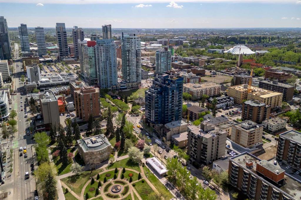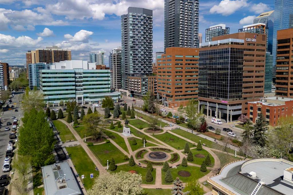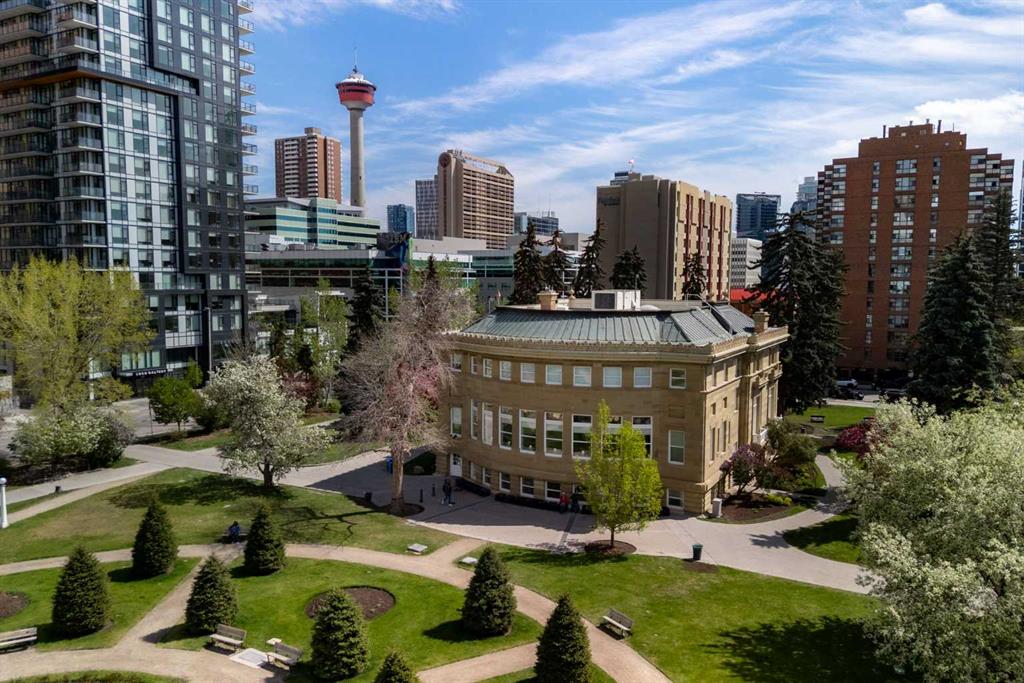 Experience refined luxury in the heart of the beltline overlooking Central Memorial Park. This sprawling floor plan lives more like a house and less like a condo, with two private terraces, and an abundance of luxurious upgrades that are sure to satisfy even the most discerning buyers. Ideally located, with Calgary’s vibrant entertainment scene, fine culinary experiences, and the downtown core all within a short walking distance, yet peacefully surrounded by the foliage and tranquility of the park. Beautiful mahogany hardwood flooring is complemented by stainless steel appliances and granite countertops flowing throughout the expansive open concept kitchen and living room. The magnitude of square footage offered is a rarity, and provides an exceptional layout including two spacious bedrooms and a den, perfect for those seeking more space while remaining central. The primary retreat offers a walk-in closet suitable for any sized wardrobe, and a lavish five-piece ensuite with heated tile floors. Guests can visit in comfort with the second bedroom providing its own ensuite and walk through closet, or for an elevated level of privacy, rent one of the guest suites offered by the building. Enjoy warm summer nights entertaining out on one of the two private terraces as the palpable energy of the city bustles below. Central Air Conditioning provides year-round comfort, and built in speakers provide the soundtrack to your daily life. Additional amenities include two titled parking stalls with a storage cage, building concierge, a fitness centre, bike storage, a rooftop patio with a community garden, and a social room. Take advantage of this exceptional opportunity to own a very unique residence in one of Calgary’s most desirable downtown locales.