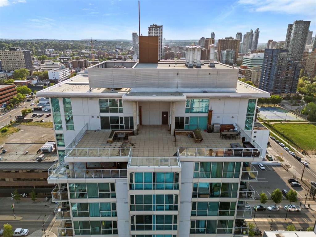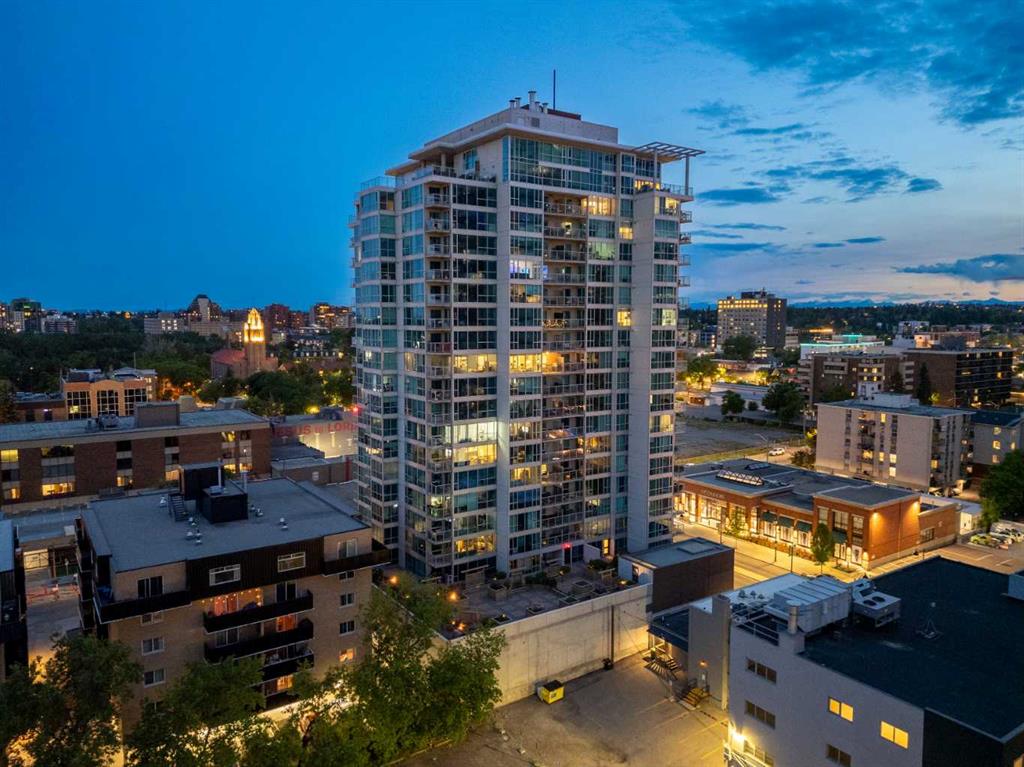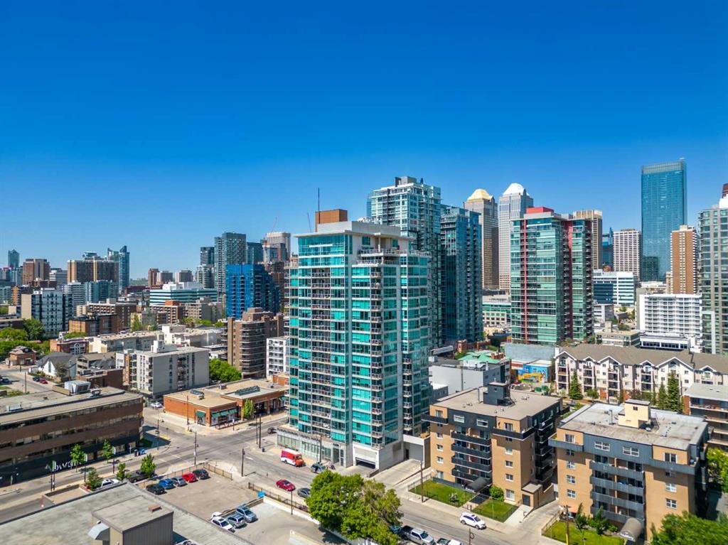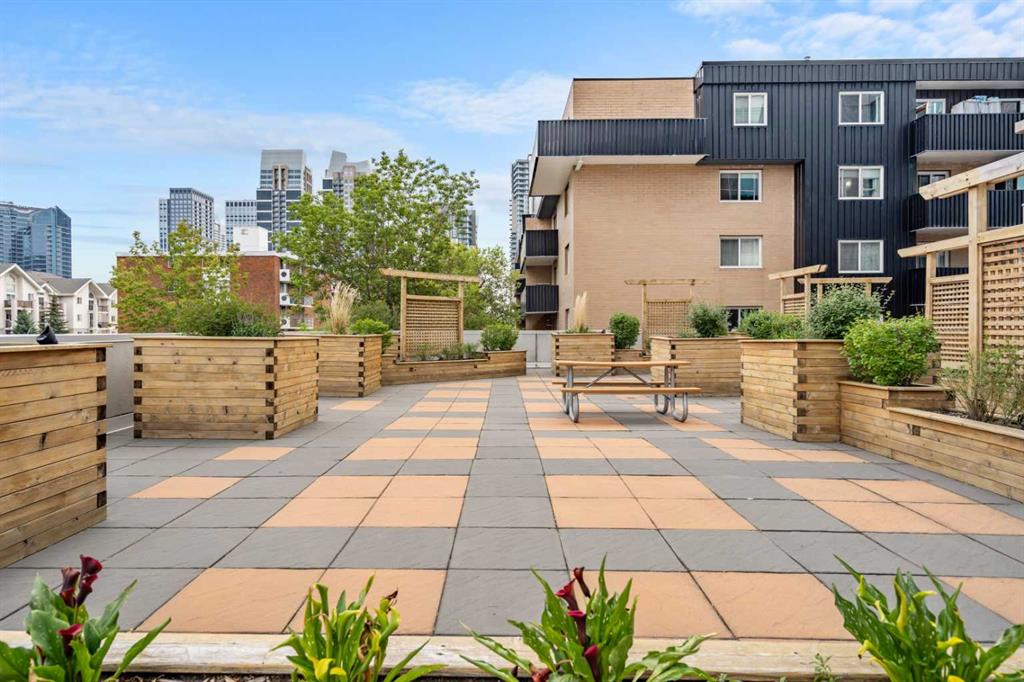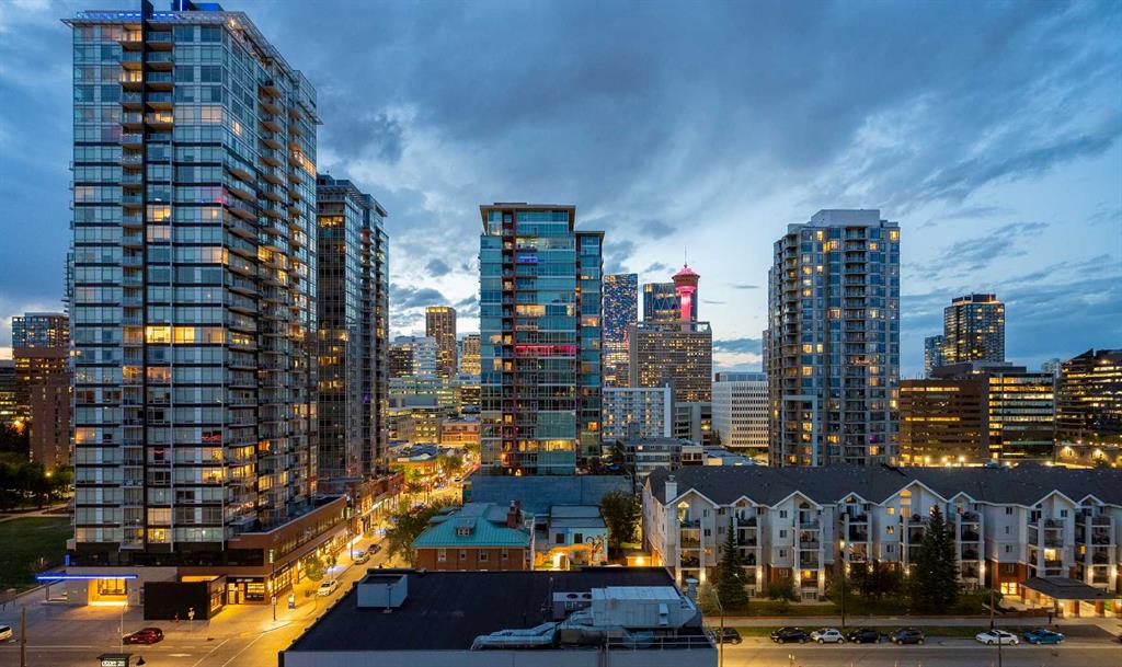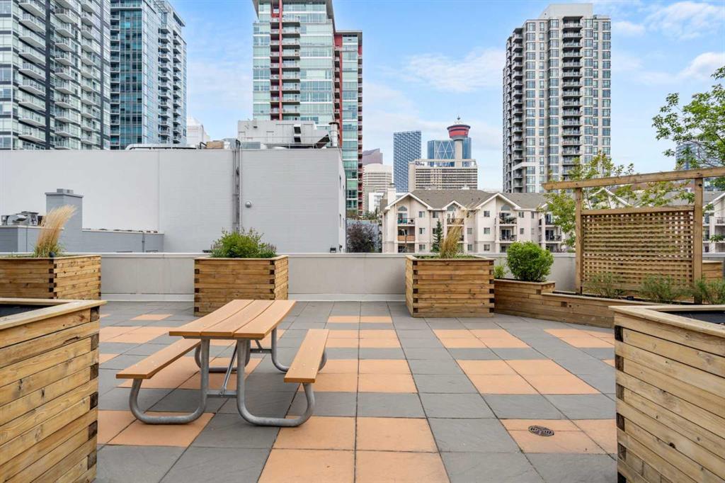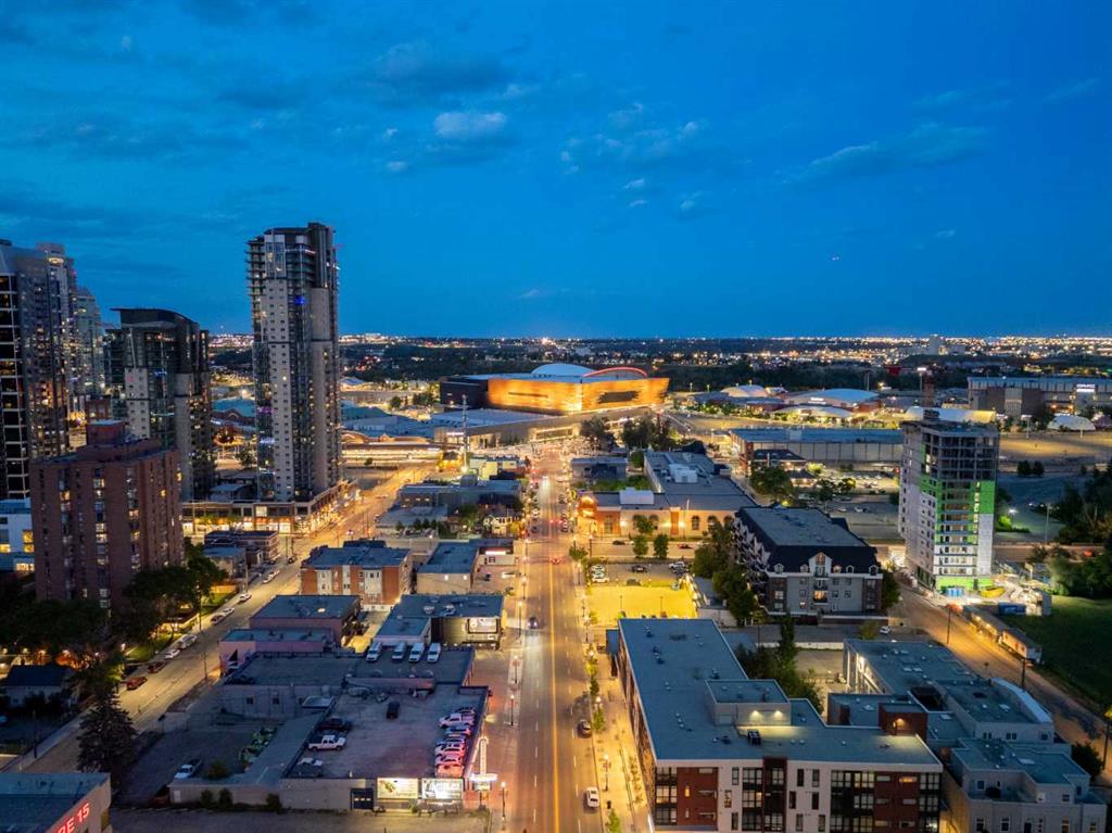 Welcome to Chocolate by Battistella — where nearly 800 sqft of stylish southwest-facing living meets skyline views and elevated urban design. This rare corner unit is wrapped in dramatic floor-to-ceiling windows, filling the open-concept plan with natural light by day and sparkling city views by night. Polished acid-washed concrete floors flow through a spacious kitchen with large island/eating bar, dining area, living room, and a versatile den/office nook. Step into the primary bedroom with adjacent spa-inspired bath featuring a vessel sink and soaker tub. Enjoy the convenience of in-suite laundry with new washer/dryer, ample storage, and central A/C to keep things comfortable year-round. The true showstopper? Your private 250+ sqft balcony with gas BBQ hookup and coveted SW exposure—perfect for lounging, entertaining, or simply soaking up the city vibe. Just outside your door, and within 20 feet of the unit, are two incredible shared spaces: a garden patio for fresh air and relaxation, and a flex room available anytime (no bookings required!). Plus, residents can head upstairs to the penthouse rooftop patio for panoramic skyline views.Chocolate is a pet-friendly building, making it easy to enjoy downtown living with your four-legged companion. All this in a highly walkable Beltline location, just steps to 17th Ave’s boutique shopping, top restaurants, coffee shops, fitness hubs, and transit. Urban living. Elevated. Decadent. Yours.