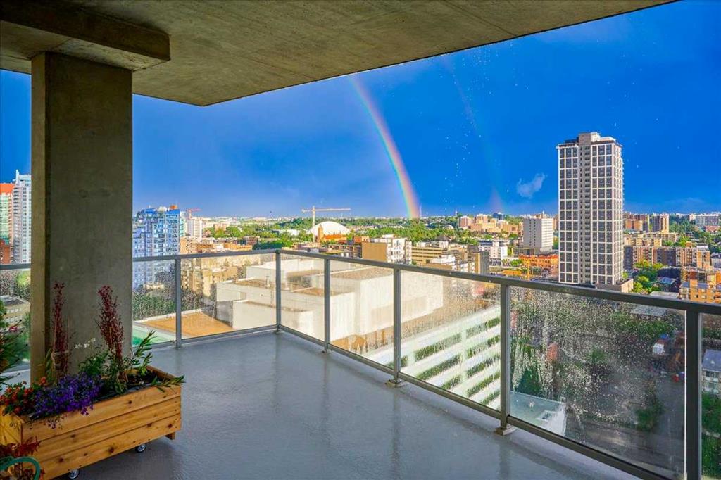 Designer Corner Unit with Panoramic City Views in the Heart of the Beltline. Step into modern luxury with this 17th-floor corner residence in the sought-after Castello building. Boasting floor-to-ceiling windows, 9-foot ceilings, and a massive wrap-around balcony, this home is designed for those who value natural light, stylish finishes, and unbeatable views spanning east, south, and west across Calgary’s skyline. Not to mention your own private viewing of the Stampede fireworks!