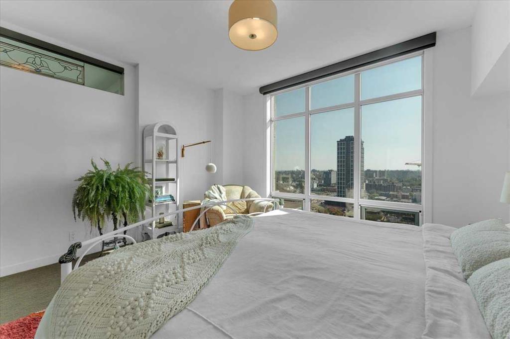 Your primary retreat is a true sanctuary, featuring a full length window with automatic blinds, a spacious walk-in closet with built-ins, and a spa-inspired ensuite complete with double sinks, a private water closet, and a luxurious 3-sided glass shower with rain head. A second bedroom and full bathroom offer flexibility for guests, a home office, or both.