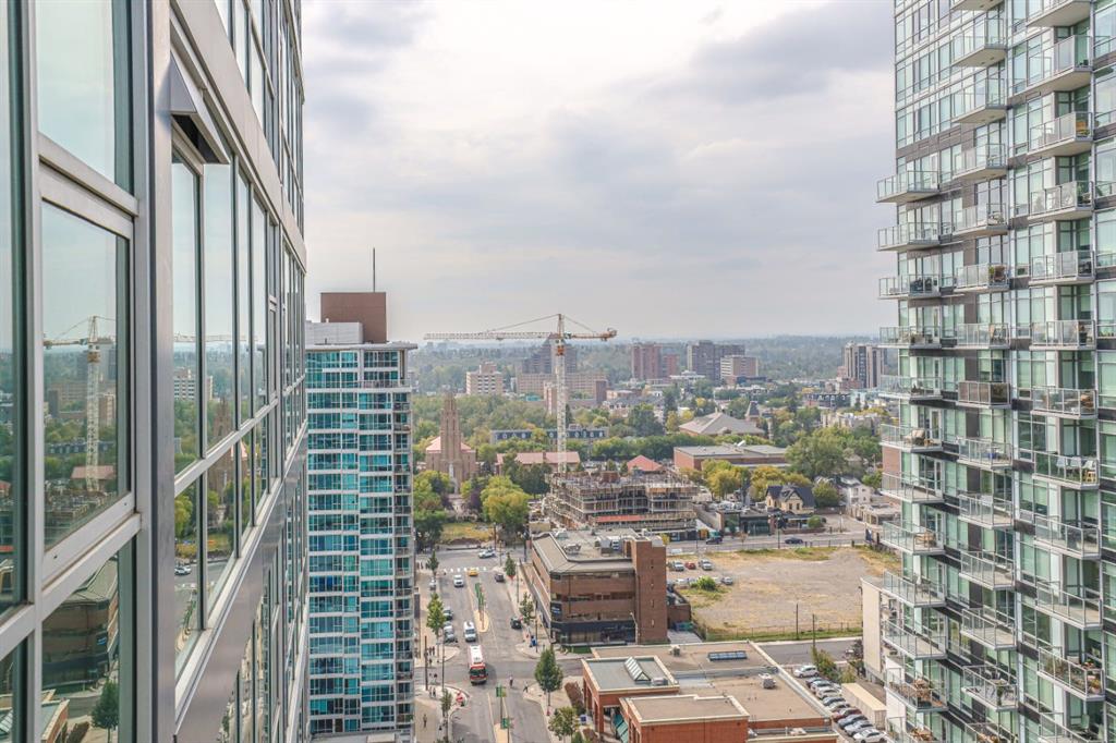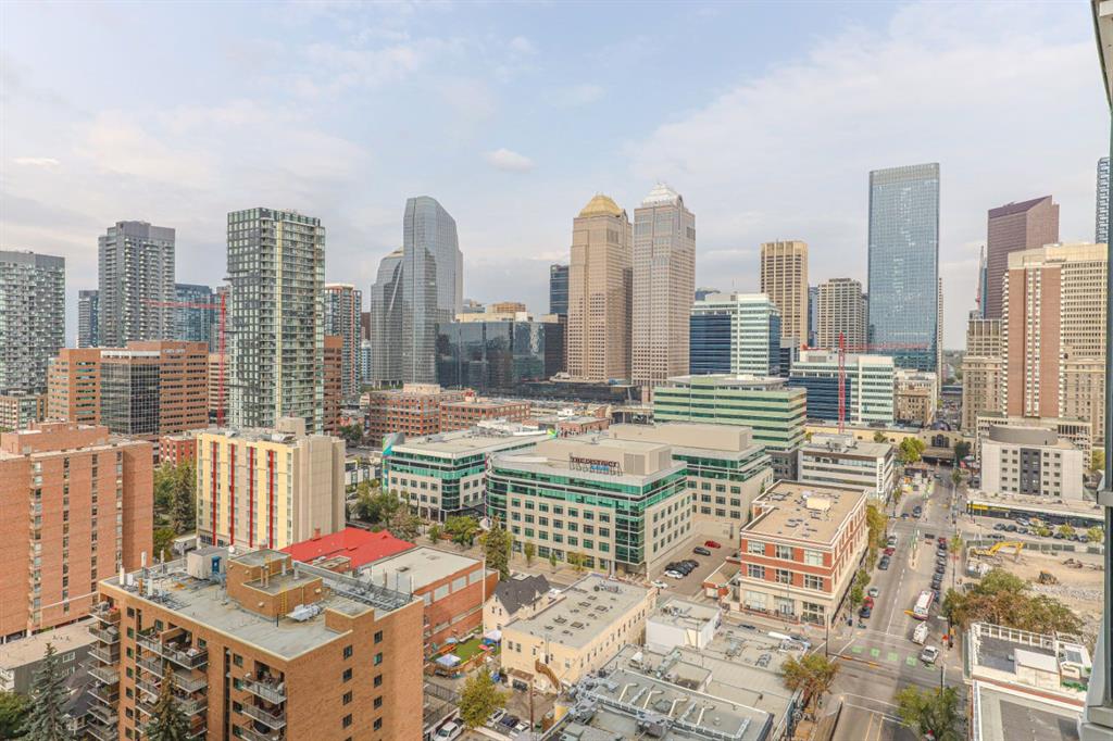 AIRBnB/short term rental friendly building! Perched on the 18th floor, this stylish 2-bedroom, 1-bathroom unit showcases spectacular downtown Calgary views through expansive floor-to-ceiling windows. The bright, open layout features polished concrete floors, in-suite laundry, and comes with a secured, heated parking stall in this solid concrete building. Enjoy a prime Beltline location with a 98/100 Walk Score and 94/100 Bike Score—just steps from some of Calgary’s best restaurants, cafe’s and shops. Right next door you’ll find Vine Arts, Proof Cocktail Lounge, Anytime Fitness and First Street Market. Building amenities include a 4th-floor terrace garden and convenient bike storage. This is inner-city living at its finest—whether as a home or investment!