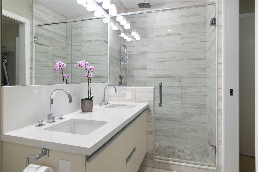 This beautiful, airy sub-penthouse in The Guardian North Tower welcomes you into a world of light and breathtaking views. Located on the 36th floor, this two-bedroom contemporary condo offers 1,260 sqft of refined urban living. The northeast corner location (one of only 4 units) on the 36th floor provides 270-degree views from the downtown skyline to the West, sweeping across to the North and wrapping all the way around to the East. Featuring floor to ceiling windows, 10-foot ceilings and terraces off the principal living spaces, the master bedroom, and the second bedroom. The main living area seamlessly flows with an open floorplan concept, and the bedrooms are ideally located for privacy and seclusion. Exceptional finishings such as engineered hardwood flooring, ceramic tiling, and blackout blinds offer comfort and luxury. Upgrades include an expansive pantry off the kitchen, and double blinds throughout offering either custom black-out or filtered light options. The living room affords downtown skyline views, and long-range views to the north and the east. Step onto the terrace through the patio doors and bring the stunning views into a spectacular perspective. Nestled between the living room and the kitchen, the dining room is elegant and offers spacious accommodation for a table of 8-10. The kitchen is a chef’s dream with Italian Armony Cucine cabinetry, a full Miele appliance package, and a large full waterfall island with seating for 4-5. Quartz counter-tops and a glass backsplash complete a stylish and beautiful kitchen that creates seamless entertaining and comfortable family living. Providing comfort with sophisticated style, the main living area and terrace are ideally suited for entertaining and modern living, all while enjoying unrivaled views, sunsets, and extraordinary downtown city lights. The primary bedroom is a tranquil retreat and offers outstanding city views, a 5-piece ensuite with double vanity, quartz countertops, and an upgraded, customized large walk-in closet. The second bedroom is optimally located on the opposite side of the floor plan and has its own 4-piece ensuite with quartz counter-tops. This bedroom also has two closet spaces with built-ins and its own private terrace with stunning east and north views, ensuring privacy and comfort for guests or family members. In-suite stacked laundry and an expansive pantry, and elegant powder room round out the living space. This unit comes with two side-by-side titled parking stalls in the underground heated parkade, in a coveted location directly opposite to elevator access. It also has an assigned storage locker, and all the amenities of The Guardian. Full-service amenities include a concierge, security, a state-of-the-art fitness facility, Residents Club, and outdoor garden terrace. Experience the convenience and excitement of living just steps away from shopping, restaurants, the new BMO Event Centre, and Pixel Park offering a dog park and sports courts, and the new Scotia Place