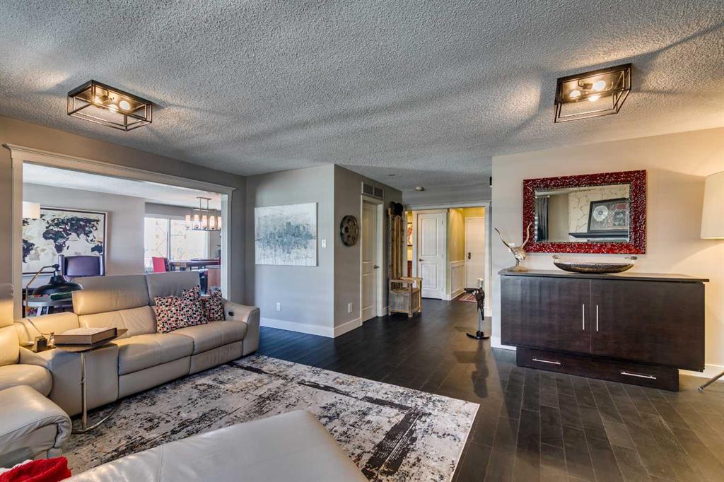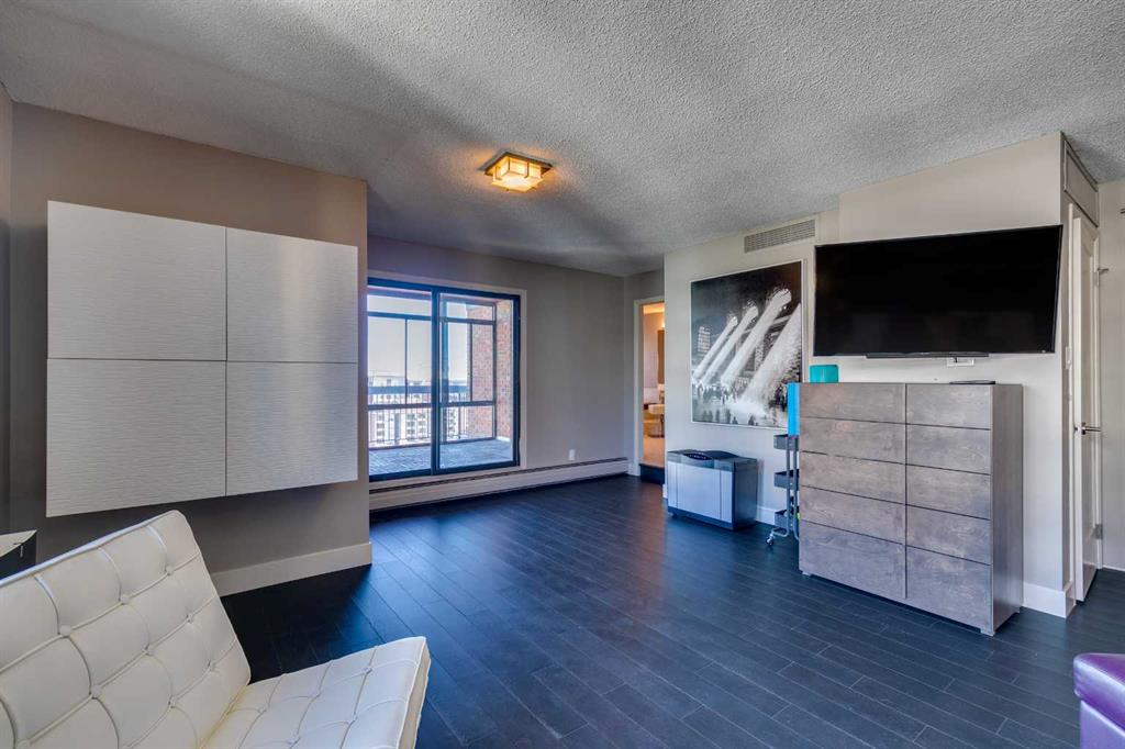 This penthouse features two outdoor balcony retreats, also including a private three-season sunroom & expansive windows that offer breathtaking vistas of sunrise, the Calgary skyline, & views of the Stampede fireworks from almost every room. Meticulously crafted, every facet of this unit exudes thoughtful design, featuring a range of premium upgrades, such as new matte black hardwood floors, fresh paint, central air conditioning, a central vacuum system, designer light installations paired with recessed LED lighting, & luxury window coverings.