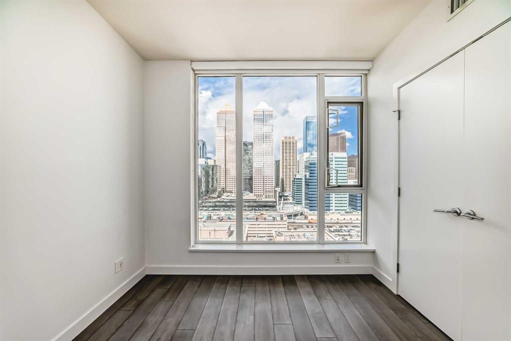 Priced to sell! Experience elevated city living in this beautifully appointed 1-bedroom, 1-bathroom condo perched on the 20th floor of Park Point—ideally located in the heart of Calgary’s vibrant Beltline district. Enjoy breathtaking panoramic views of downtown, including the iconic Calgary Tower, all from the comfort of your private balcony. Step into a sleek, modern galley-style kitchen designed to impress, featuring a gas cooktop, full slab granite countertops and backsplash, and built-in oven, microwave, and fridge. Floor-to-ceiling windows flood the open-concept living space with natural light, while wide plank laminate flooring and 9-foot ceilings add a touch of refined elegance. The spacious bedroom offers privacy and functionality with dual closets, while the stylish bathroom includes a marble countertop vanity, walk-in glass shower, and clever hidden storage behind mirrored panels. A versatile flex room offers added functionality—perfect for a home office, creative studio, or additional in-suite storage. Additional highlights include in-suite laundry, an assigned storage locker, and a titled underground parking stall conveniently located just steps away. Park Point offers resort-style amenities including a fully-equipped gym, yoga room, sauna, steam room, lounge, BBQ terrace, zen garden, concierge service, 24/7 security, and a car/pet wash bay. You’re just steps from Central Memorial Park, top dining and shopping spots, transit, and the downtown +15 network. This is the ultimate downtown lifestyle. Don’t miss your chance to call this beautifully designed, move-in-ready condo home. Book your private tour today!