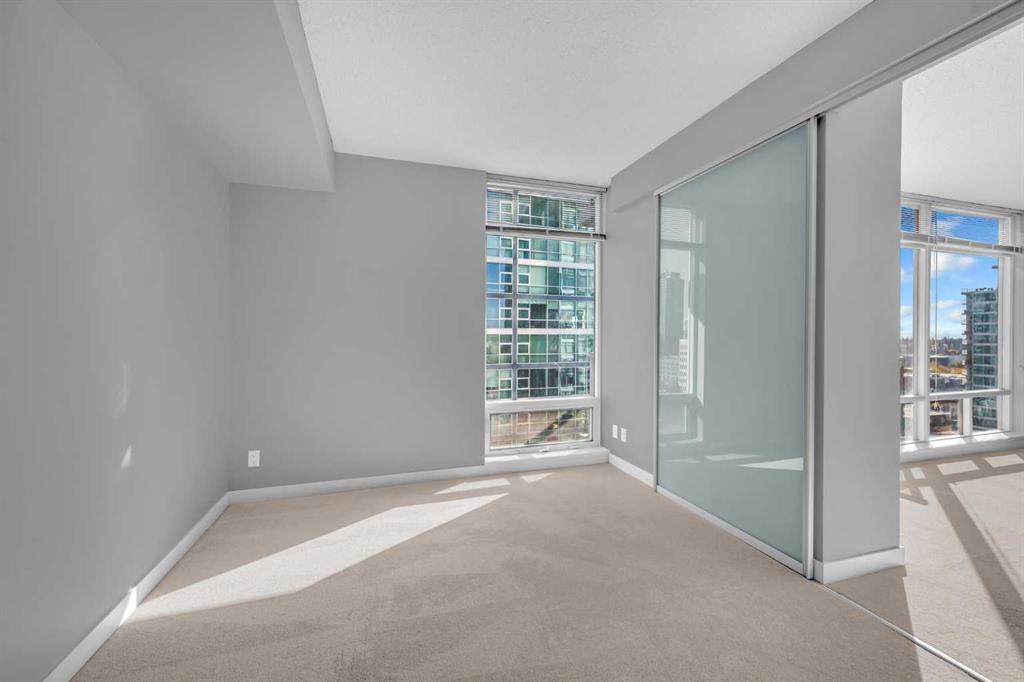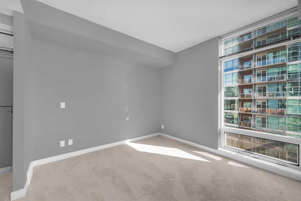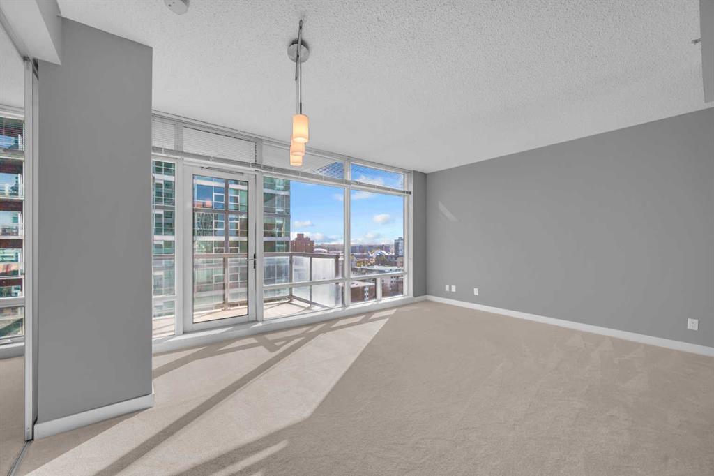 The spacious living area opens onto a large covered balcony—perfect for your BBQ or enjoying the downtown skyline.