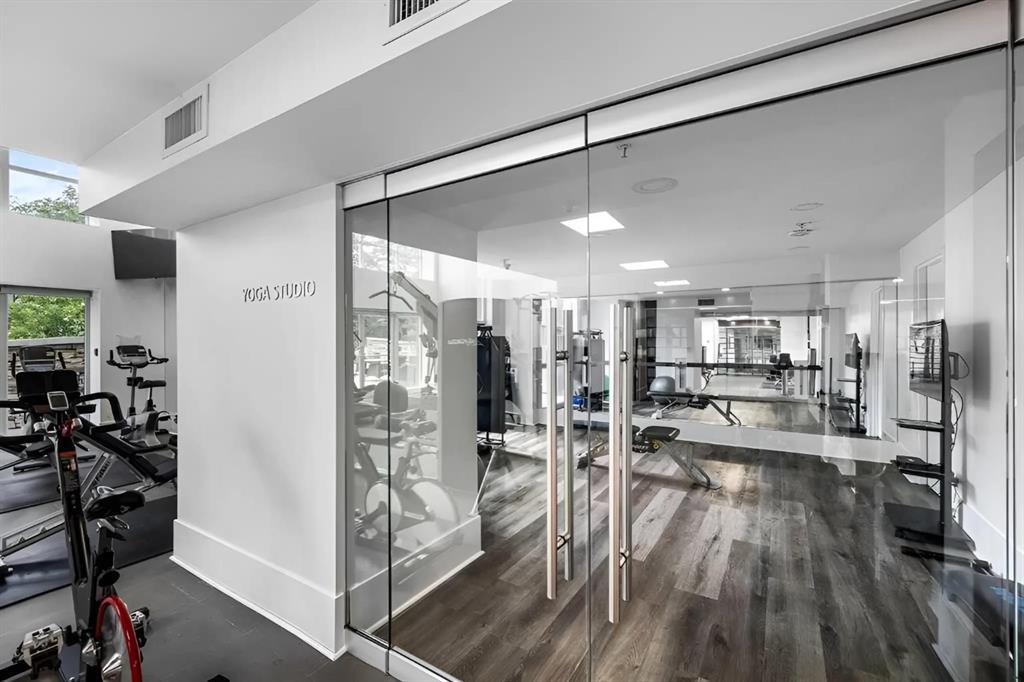 Bright and stylish 1 bed + den south-facing condo featuring an open layout, built-in desk, and modern kitchen with quartz countertops, gas cooktop, and full-height cabinets. Floor-to-ceiling south windows fill the home with light and showcase breathtaking 180° downtown and mountain views. Enjoy seamless indoor-outdoor living from your private balcony accessible from both the living room and bedroom. The primary suite offers a walkthrough closet and spa-inspired ensuite with soaker tub and rain shower. Includes in-suite laundry, A/C, titled heated parking, and storage locker. Luna residents enjoy top-tier amenities—fitness & yoga studios, steam room, lounge, guest suites, courtyard, and concierge. Steps to Co-op, 17th Ave, LRT, cafés, and parks—urban living at its best!