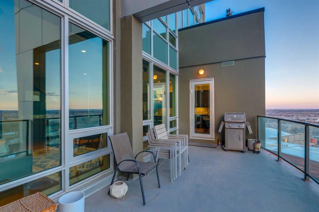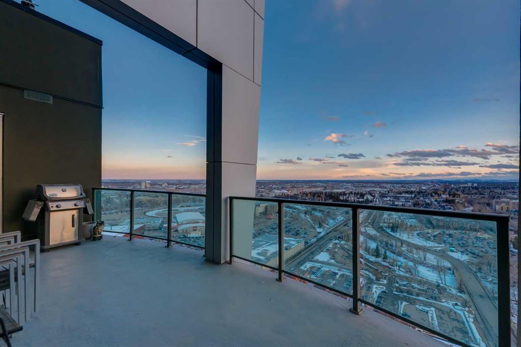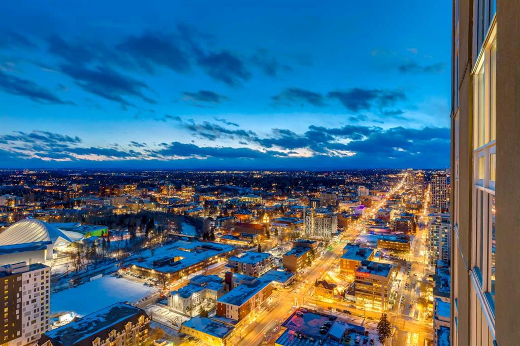 WELCOME to this PRIVATE PENTHOUSE in the VETRO Building on the 34th + 35st FLOOR with 2,139 Sq Ft of REFINED LIVING across a 2-STOREY, 2 BED, 2.5 BATH EXECUTIVE LAYOUT, 2 TITLED PARKING STALLS in UNDERGROUND HEATED GARAGE, an ASSIGNED STORAGE UNIT, and a HUGE Balcony including UNOBSTRUCTED GORGEOUS VIEWS of the ROCKY MOUNTAINS all in the BELTLINE!!! This IMPECCABLE HOME has Touchscreen ELAN controlled climate, lights/blinds, + sound system throughout. The Main level opens with a WELCOMING FOYER, in-suite STORAGE, + a 2 pc Bath. The CHEF-INSPIRED KITCHEN features SS BOSCH Appliances including a BUILT-IN ESPRESSO MACHINE, a BERTAZZONI GAS Range, SLEEK ESPRESSO Cabinetry, LARGE ISLAND with QUARTZ Countertops. Casual Dining is easy at the BREAKFAST BAR, and the BUILT-IN Desk is handy in the Dining Room which will host FRIENDS and FAMILY gathering together. A door to a PRIVATE BALCONY w/GAS LINE - your front-row seat to PANORAMIC DOWNTOWN VIEWS, MOUNTAIN VIEWS glowing Sunsets, and Calgary’s iconic SKYLINE. The OPEN-CONCEPT LIVING ROOM is framed by TOWERING SOUTH-FACING WINDOWS, while an INTEGRATED WET BAR elevates your ENTERTAINING EXPERIENCE - perfect for hosting GUESTS. NATURAL LIGHT floods the space, highlighting the SEAMLESS CONNECTION between the Living, Dining, + Kitchen areas. The 2nd Bedroom can also be used as an OFFICE. It has a WALK-IN Closet, and a 3 pc Bath. The Laundry room is next, and the STORAGE area underneath the stairs. The upper level is equally IMPRESSIVE the EXPANSIVE PRIMARY BEDROOM - a TRANQUIL RETREAT with multiple LARGE WINDOWS, CUSTOM BUILT-INS, + plenty of space for a full suite of furnishings. The 2nd Entrance on the 35th Floor for ADD security. The LUXURIOUS 5 pc EN-SUITE boasts a DOUBLE VANITY, a BACKLIT Mirror with a TV EMBEDDED, DEEP JETTED SOAKER TUB with 2 SHOWER HEADS. Crafted for individuals who ASPIRE to a LUXURY-DRIVEN URBAN WAY OF LIVING, this residence offers a SOPHISTICATED MULTI-LEVEL EXPERIENCE with SOARING DOUBLE-HEIGHT CEILINGS, DRAMATIC FLOOR-TO-CEILING GLASS, and UNSTOPPABLE CITY VIEWS from SUNRISE TO NIGHTFALL. Residents of VETRO enjoy access to a STATE-OF-THE-ART 2-Level FITNESS CENTRE w/ a Hot Tub, a Theatre, 24-HOUR Security, a Concierge, Secure Bike Storage + access to beautifully maintained common areas. A DEDICATED elevator serves the 34th floor, providing residents with QUICK + exclusive. Ideally located in the heart of the BELTLINE, this residence delivers unmatched walkability to Dining, Shopping, Entertainment, + Transit – with effortless access to the C-TRAIN, Stampede Park, the Downtown Core, + major commuter routes. Adding to the long-term appeal, a new LUXURY FAIRMONT HOTEL is set to be built next door, further elevating the prestige and vibrancy of the surrounding area. It has STRIKING ARCHITECTURAL design, PREMIUM FINISHES, intelligent layout, + BREATHTAKING VIEWS, this home stands as a TRUE EXECUTIVE-LEVEL RESIDENCE for the discerning buyer seeking LUXURY, SOPHISTICATION, + UNPARALLELED INNER-CITY LIVING!