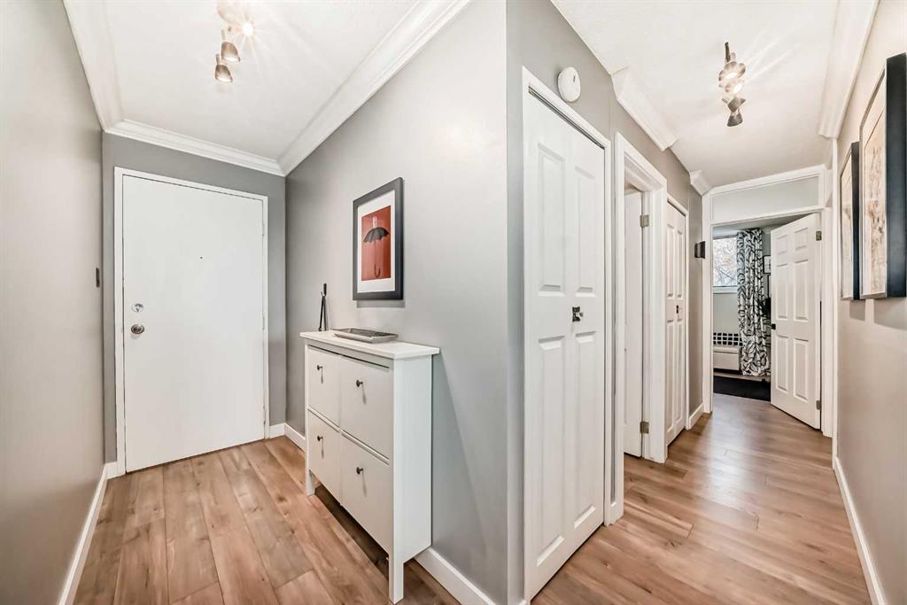 Get ready to fall in love! Absolutely STUNNING home! FULLY RENOVATED HOME! Sunny South Facing Home | End Unit | One of the few complexes in this area WITHOUT Post Tension Cables. Proudly welcoming you home to Manor House – this well-cared for, well managed complex features this STUNNING 2-bedroom home that has been transformed and modernized, in the desirable Beltline neighbourhood – just steps away from all the action! Your new home is ideally tucked away in a quiet corner. Inside you will instantly appreciate the new beautifully elegant luxury vinyl plank flooring throughout the home which matches the modern décor throughout. The home features exceptional updates and upgrades throughout, which start out in the striking kitchen. The kitchen has been completely renovated, highlighted by all-new cabinetry and stunning Quartz gun metal grey countertops, with undermount sink. Counter level seating awaits, perfect for visiting with friends and family as you entertain from your exquisite gourmet kitchen. Updated SS appliances await. There is ample space for a deep freeze IN your kitchen, without losing any counter or cupboard space! Just off the kitchen is a large dining room, which can easily host a sizable dining table. This home features beautiful crown moulding throughout; as well as beautifully updated lighting throughout. The large stunning living room is an exceptional space, large enough to accommodate all of your furniture, providing plenty of space to relax or provide the ideal space to entertain friends and family! The tour continues with 2 large closets, and an updated & stunning 4-pc bathroom. The Primary bedroom is one of the largest you will find – hosting a King size bed, dresser and nightstands with ease, while still allowing for ample space leftover. The Primary closet features custom built-ins, easily organizing your wardrobe. The secondary bedroom is of excellent size and is the ideal place to host your home office, guest bedroom or use as a Yoga space! Updated vinyl windows allow your home to be energy efficient year-round! The large (11.5x 5 ft) balcony is ready for your enjoyment – offering endless sunshine with a sunny south facing view, perfect to enjoy in the warmer months! There is FREE laundry located on every floor of this superb building. Your new home comes with one assigned secure parking stall + additional storage locker for your items you don’t use every day. There is so much to love about this unique home including its location! A true 'walker’s paradise' with a walk score of 99/100 – it doesn't get any better than this! You can walk or bike easily to work, and take in and enjoy the multitude of local shops, restaurants, pubs, grocery stores, and so much more!