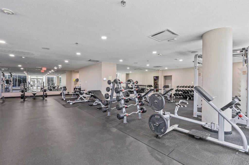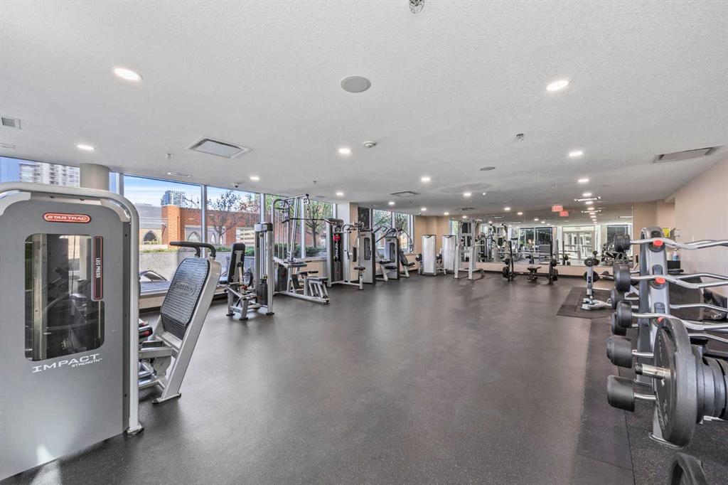 Experience downtown living at its finest in this beautifully designed 2 bed, 2 bath condo located in the heart of Calgary’s vibrant core. Offering nearly 800 sq ft of thoughtfully planned space, this unit blends style, comfort, and convenience—perfect for professionals, roommates, or those looking to downsize without compromising on location or function. Step inside to discover a bright and open living area with floor-to-ceiling windows that flood the space with natural light and showcase amazing city views. The modern kitchen is equipped with stainless steel appliances, quartz countertops, and sleek cabinetry, all seamlessly integrated into the open-concept layout that makes entertaining or relaxing feel effortless. Both bedrooms are strategically located on opposite sides of the unit, providing excellent privacy. Each features a walk-through closet and direct access to a full bathroom—ideal for shared living or hosting guests. The spacious primary bedroom includes a private 4-piece ensuite, while the second bedroom connects to the main bathroom, which also offers a secondary entrance from the main living area. Brand new carpets add a fresh, updated feel, complementing the durable tile flooring and bringing warmth to the bedrooms. Comfort is top of mind year-round thanks to central A/C, and in-suite laundry ensures everyday convenience. This well-managed building offers excellent amenities including a fully equipped fitness centre and a sunny outdoor courtyard—perfect for morning coffee or unwinding with friends. You'll also enjoy a titled underground parking stall and assigned storage for all your gear. Located steps from shops, restaurants, cafes, the river pathways, and transit, this condo offers unbeatable access to the best of downtown Calgary. Whether you're investing, downsizing, or buying your first home, this move-in-ready unit offers exceptional value and a lifestyle to match. Don’t miss your chance to call this urban retreat your own!