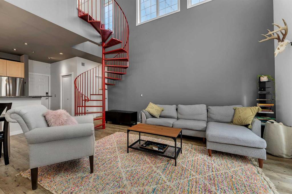 Welcome to your next chapter in the vibrant heart of Downtown Calgary! This isn’t just another condo—it’s a one-of-a-kind PENTHOUSE LOFT that perfectly blends modern luxury with urban character. Step inside and be immediately impressed by the 20-foot vaulted ceilings, expansive windows, and sun-soaked south-facing balcony that fill the space with natural light. The open-concept design creates an effortless flow between living, dining, and entertaining areas—anchored by a cozy gas fireplace that sets the tone for Calgary’s crisp winter nights. The kitchen is both stylish and functional, featuring granite countertops, stainless steel appliances, and a large eating bar that’s perfect for morning coffee or evening wine with friends. Retreat to your primary suite, complete with a custom walk-in closet and a 4-piece ensuite designed for relaxation. The second bedroom offers flexibility for guests, roommates, or an at-home workspace—whatever suits your lifestyle best. But the real showstopper? The spiral staircase leading to your very own private loft and rooftop patio with panoramic downtown skyline views. Whether you envision a creative studio, fitness space, or peaceful retreat under the stars, this loft delivers endless possibilities. Enjoy the convenience of in-suite laundry, a titled parking stall, and underground storage—rare perks in the Beltline. With over 1,100 sq. ft. of thoughtfully designed living space, this penthouse is more than a home—it’s an experience. Don’t wait—book your private showing today and discover the lifestyle you’ve been dreaming of.