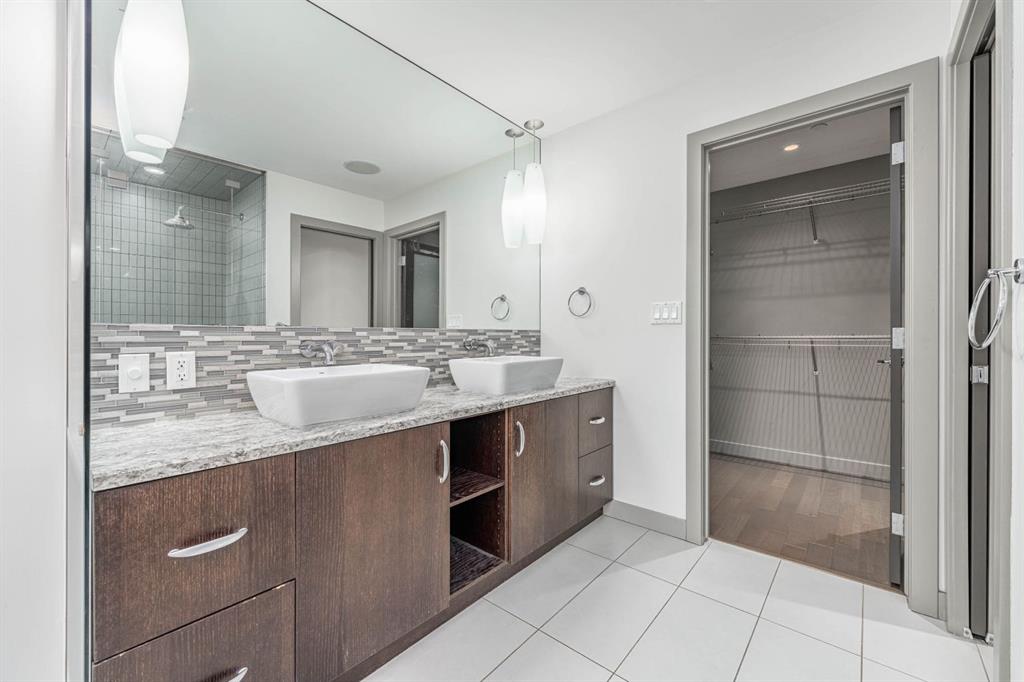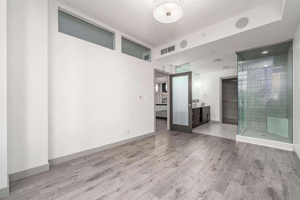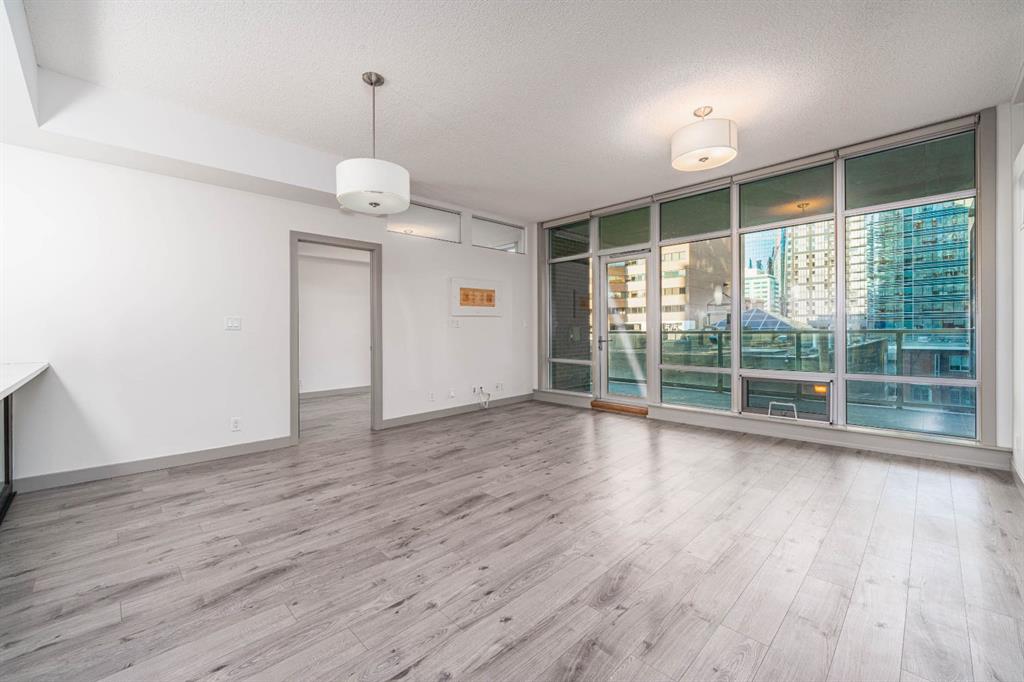 "Castello", located in Calgary's downtown design district, offers the "ultimate urban lifestyle", complete with this 2 bedroom, 2 bathroom property! With its excellent location, you’ll be able to enjoy the close proximity to all the numerous amenities and services, including bikes lanes, C-train access, gyms, restaurants, Core shopping centre, plus trendy 17th Avenue! This beautiful 3rd floor 1044 SqFt north facing property has two large bedrooms, two full bathrooms, built in desk area and large "view" balcony. This suite is equipped with sleek modern finishings with an open concept, quartz counters, plenty of cabinet space, stainless steel appliances, dishwasher and microwave/hood vent combo. Spacious master with spa-like ensuite is complete with a large walk-in closet. The second bedroom is adjacent to the bathroom, which has a large soaker tub. Full size in-suite washer & dryer, floor-to-ceiling windows, new laminate flooring, r/I ceiling speakers. Take advantage of the amenities Castello has to offer, including a well appointed gym, bike storage and visitor parking. Titled secure underground heated parking stall and tilted storage locker. This is a perfect property for the individual looking for a stylish home with an inner city lifestyle!