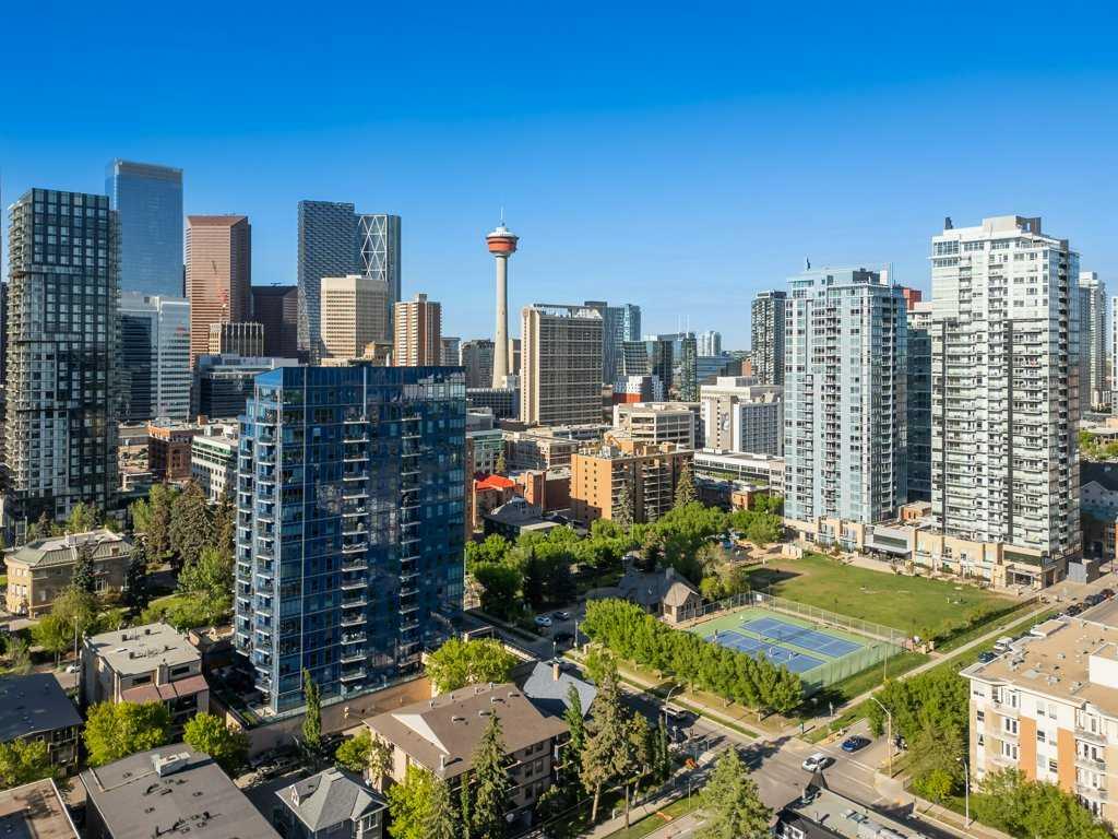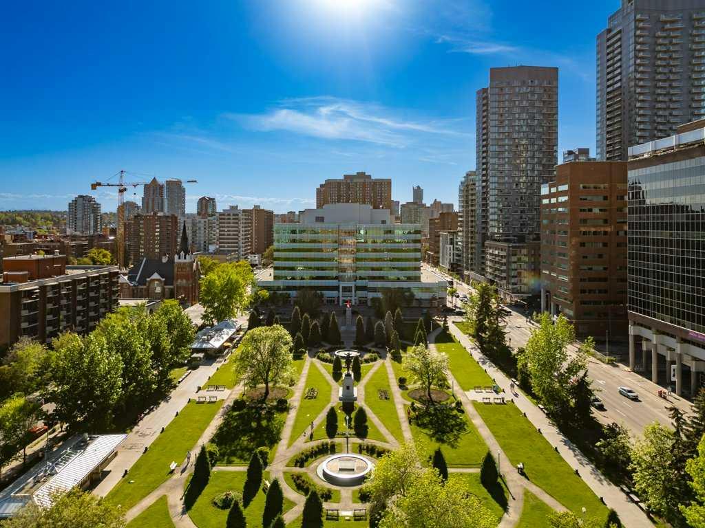 Your front-row seats to the Calgary skyline. A Penthouse feel - without the Penthouse price. Enjoy 2 bedrooms + 2 bathrooms + 2 terraces while overlooking 1 incredible view. From the moment you walk in, the energy is undeniable. Expansive windows flood the open-concept space with natural light while the city becomes your everyday backdrop. The kitchen delivers both style and function: granite counters, stainless steel appliances, gas range, rich espresso cabinetry, pantry storage and a central island designed for gathering. The living room? Equally suited for movie nights or simply watching the lights of downtown come alive - you may find the skyline steals the show. Once you step outside, everything changes. Nearly 500 sqft of outdoor space unfolds across two oversized terraces - a true rarity in urban living. One is perfectly positioned off the primary suite for quiet morning coffee. The other becomes your summer headquarters - entertaining under the glow of Calgary’s most iconic buildings with friends, laughter and evenings that stretch into the night. The best part about the view? Protected. With Central Memorial Park below, this isn’t just beautiful, it secures long-term value. Back inside, the generous primary retreat features a walk-in closet and spa-inspired 5-piece ensuite, while the second bedroom and adjacent full bath create ideal flexibility for guests or those who work from home. The lifestyle perks continue with an underground parking stall, two storage lockers, onsite concierge, fitness facility, guest suite, community garden + shared terrace, visitor parking with EV charging and loading dock convenience. All positioned in one of Calgary’s most walkable locations - steps to restaurants, cocktail bars, pubs, downtown offices, C-Train access, Stampede grounds and the future arena district. This isn't just a condo - it's a perspective upgrade. Live differently. Live above the city.