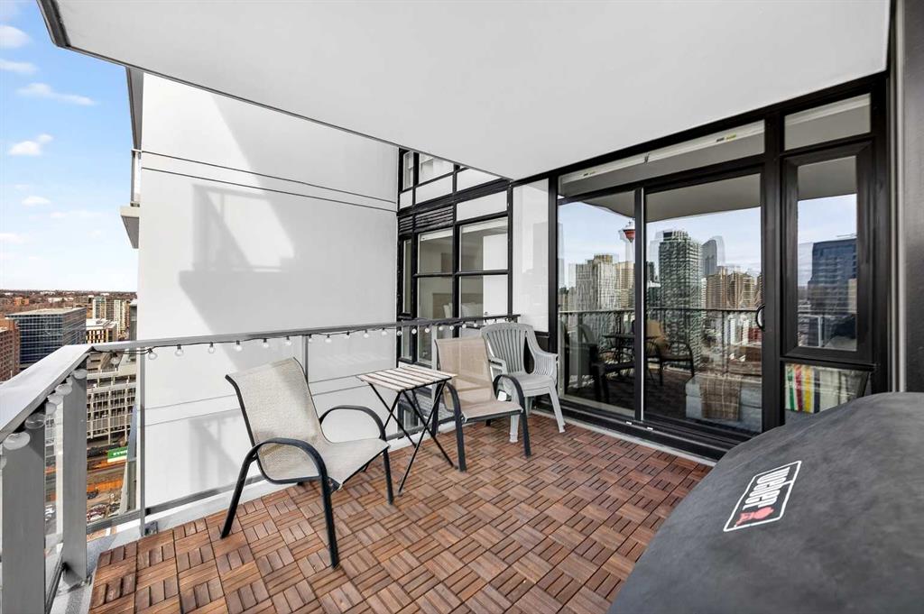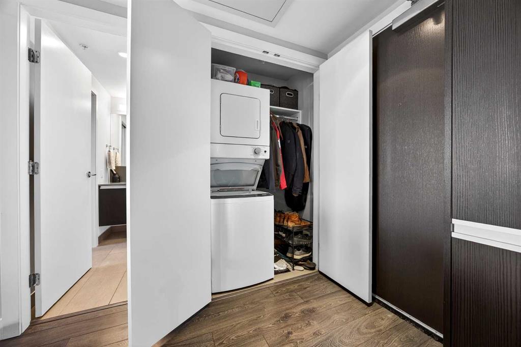 DOWNTOWN & MOUNTAIN VIEWS l HIGH FLOOR l BEST 1 Bed + 1 Bath Floor-Plan Available | Over 520 Sq. Ft. | Floor-to-Ceiling Windows | Titled Underground Parking | Premium Amenities | Prime Beltline Location l **Welcome to The Guardian, one of Calgary’s most well located high-rises in the heart of the Beltline. This bright and efficiently designed 1-bedroom, 1-bathroom condo offers over 500 sq. ft. of modern living space, ideal for professionals, first-time buyers, or investors seeking exceptional downtown value. The open-concept layout features sleek laminate flooring and expansive floor-to-ceiling windows showcasing impressive skyline and Stampede Park views. The contemporary kitchen is finished with modern cabinetry, quartz countertops, stainless steel appliances, and a central island perfect for casual dining or entertaining. The living area extends to a private balcony with a gas BBQ line — an ideal space to relax and enjoy the city lights. The spacious bedroom offers abundant natural light, a walk-through closet, and convenient access to a modern 4-piece bath. In-suite laundry and titled underground parking add everyday ease. Residents of The Guardian enjoy exceptional amenities, including a fully equipped fitness center, owner’s lounge and social room, concierge service, workshop, and secure bike storage. Located just steps from the Stampede Grounds, the Saddledome, 17th Ave, and Calgary’s best dining and entertainment, and all of the future action downtown - this is refined urban living in an unbeatable location.