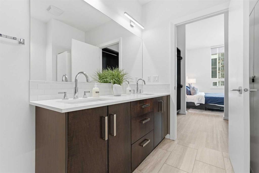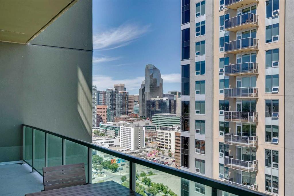 Rare Turnkey Opportunity on the 22nd Floor of Sasso with Stunning Bird’s-Eye Views of Stampede Park & Downtown! Just move in and enjoy — all furniture is included in this beautifully appointed 2-bedroom, 2-bathroom corner unit, offering over 1,200 sq ft of living space with incredible north, east, and downtown views. The open-concept floor plan features brand new laminate flooring, high ceilings, and floor-to-ceiling windows that flood the space with natural light. The updated kitchen is stylish and functional, boasting refreshed quartz countertops, a peninsula with eating bar, subway tile backsplash, ample storage, and stainless steel appliances. The kitchen flows seamlessly into the spacious living and dining areas — perfect for entertaining — and a built-in computer desk provides an ideal work-from-home nook. The primary suite offers a walk-through closet with custom built-ins and a luxurious 5-piece ensuite complete with dual sinks, a jetted tub, and a separate shower. The second bedroom, featuring a custom wood closet, is conveniently located next to a 3-piece bath — perfect for guests. Step outside to the massive wrap-around balcony and take in the panoramic views of Stampede Park, the city skyline, and downtown Calgary — truly a spectacular vantage point. Additional highlights include in-suite laundry, a large ground-floor storage locker, and one titled corner underground parking stall. Residents of Sasso enjoy first-class amenities, including concierge service, fully equipped fitness room, recreation room with pool table & fireplace, hot tub, sauna and movie theatre. All this in an unbeatable central location — walking distance to Stampede Park, MNP Community & Sport Centre, Elbow River pathways, cafes, restaurants, 17th Avenue nightlife, public transit, and downtown. Don’t miss this rare chance to own a move-in-ready home in one of Calgary’s most desirable buildings!